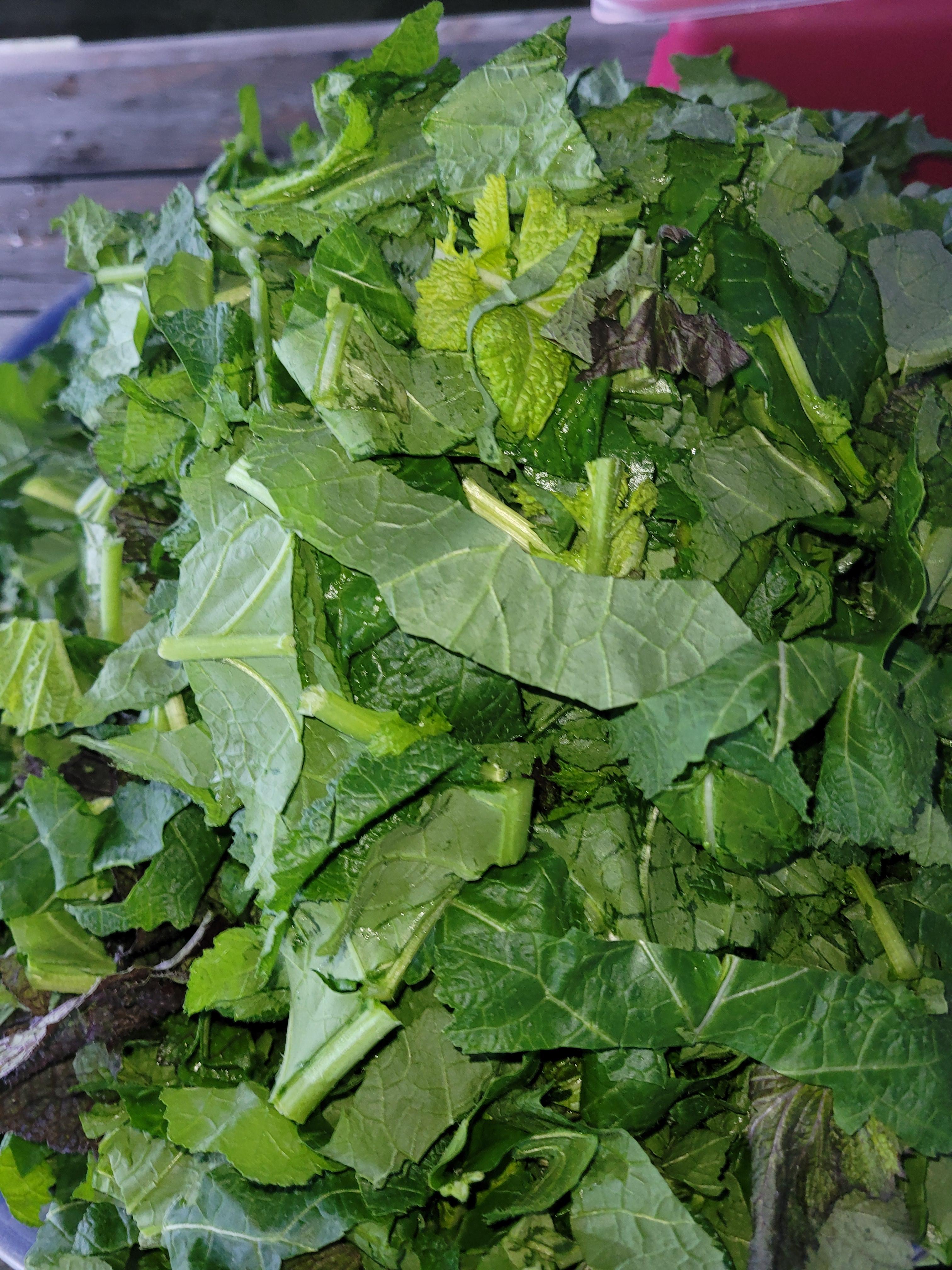 갓을 많이 넣으면 시원하고 홍갓도 있고 청갓도 있는데 두 개 넣었다