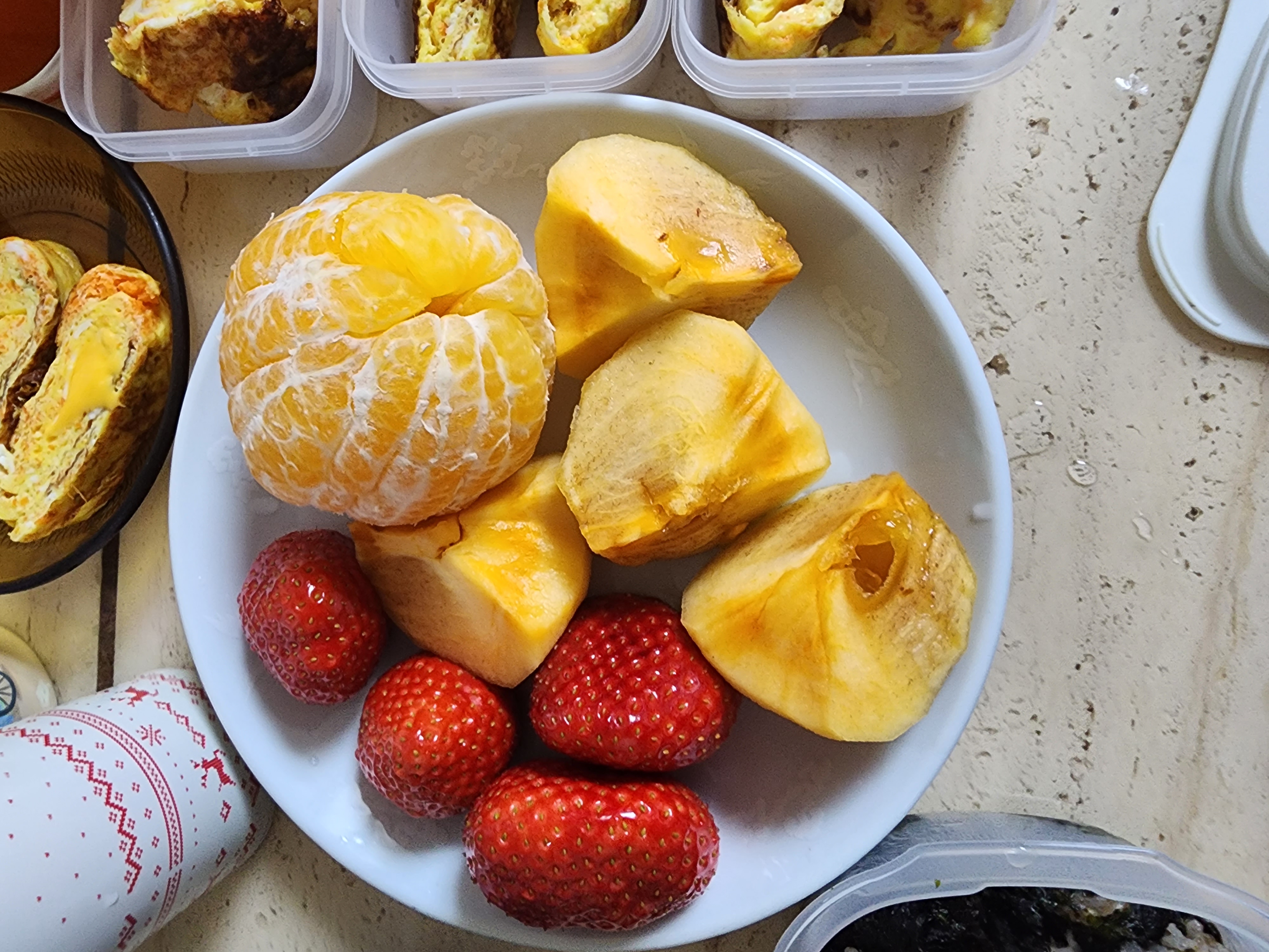 과일도 깎아서 남편이 일부 먹고 담아왔다 풍성한 점심이 되리라
