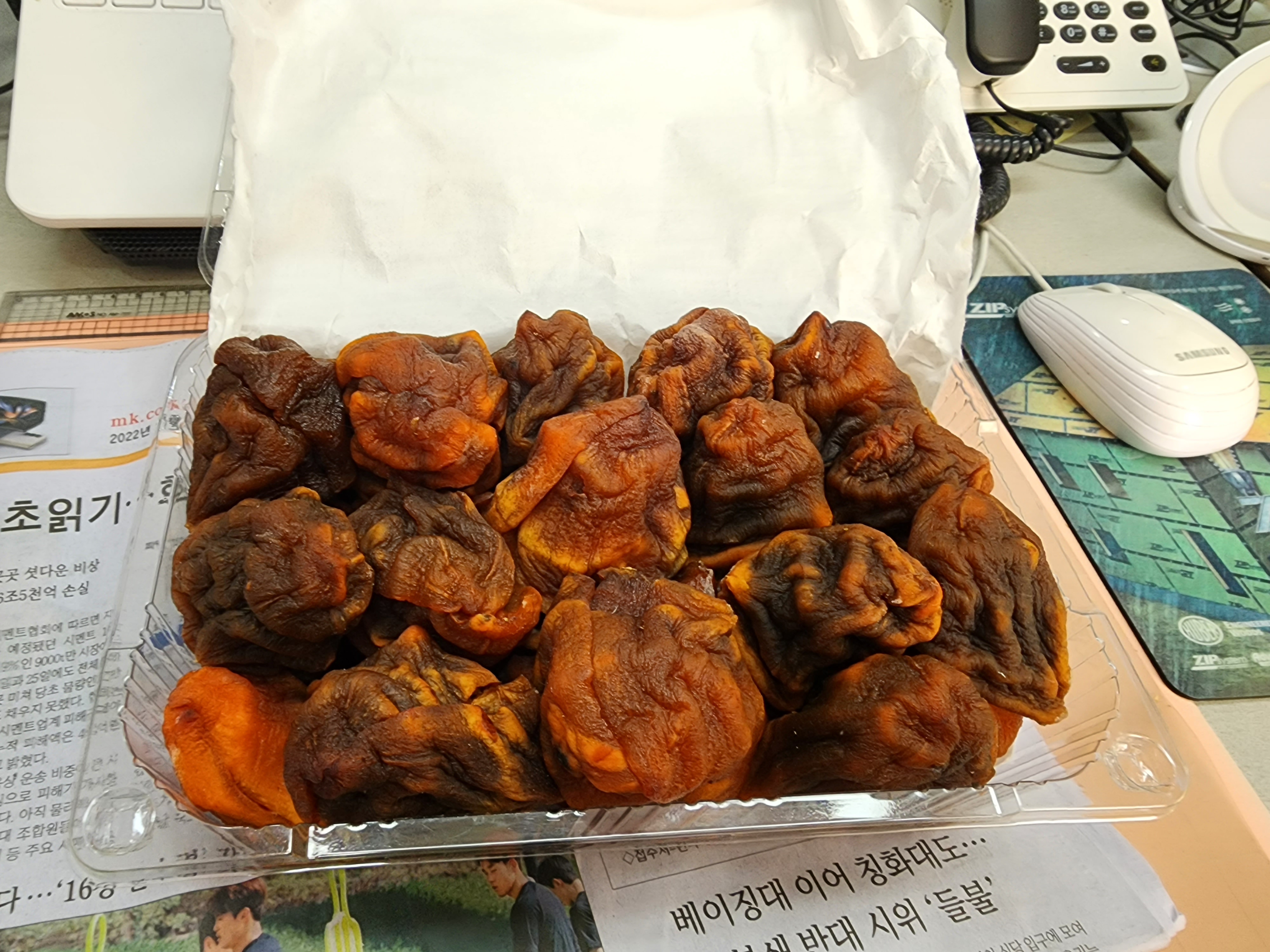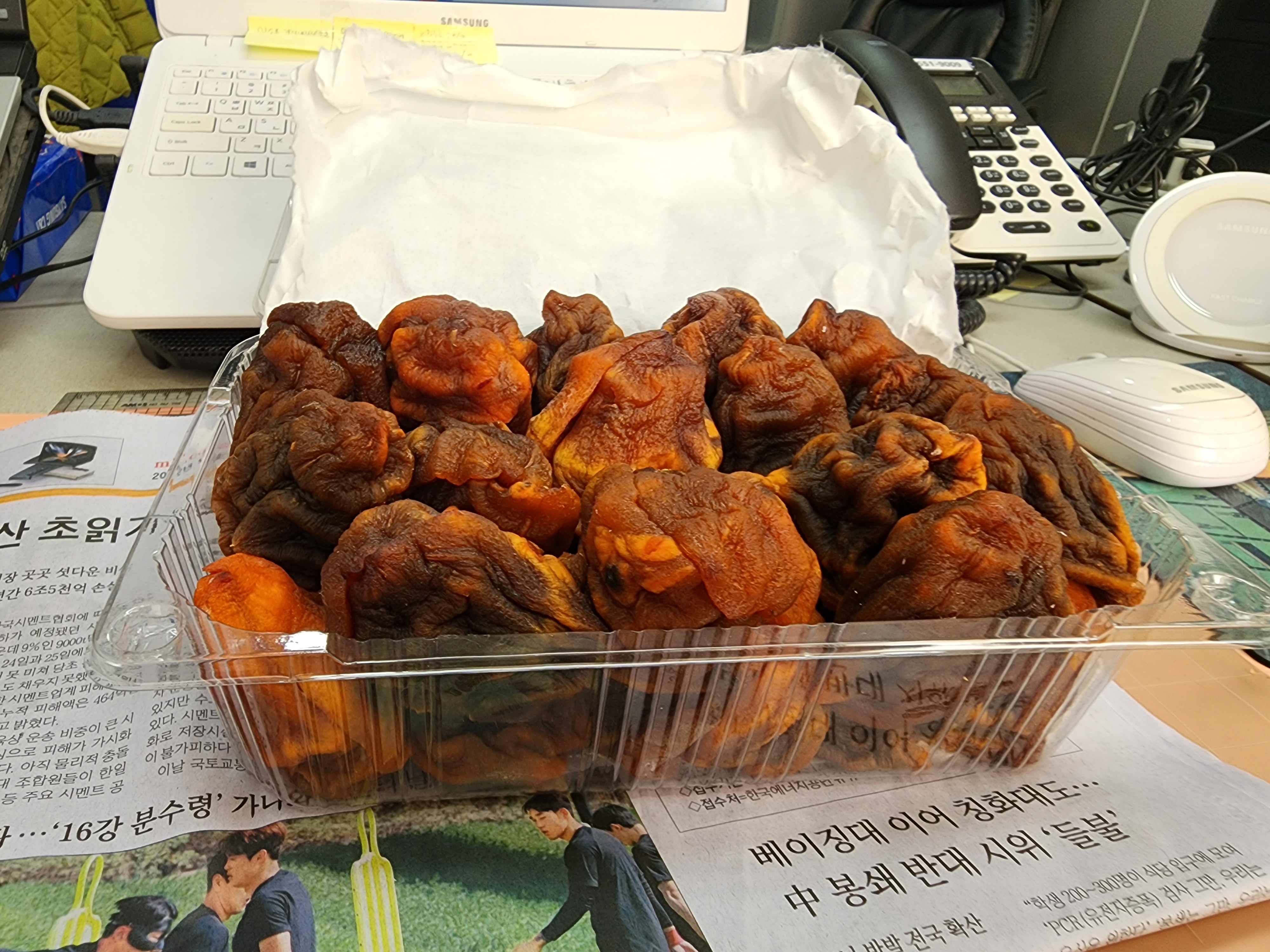 얼마 전 회의에 전라도에서 살던 전 직원이 직원들에게 곶감을 한 박스 보내왔다