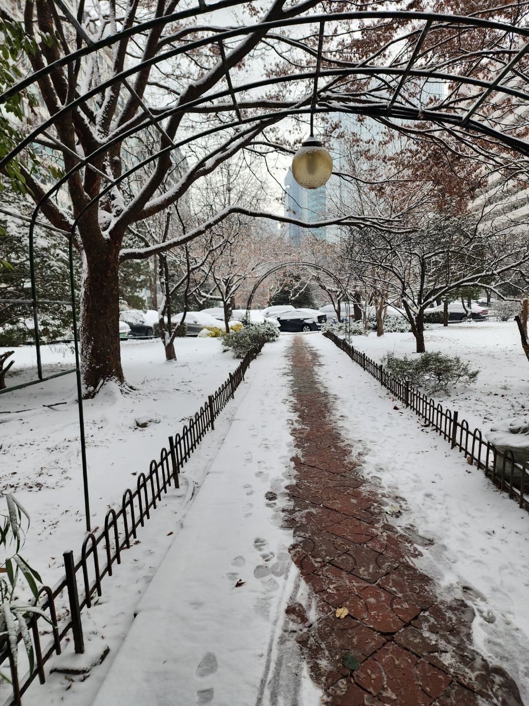 눈이온 경치를 보면서 천천히 출근하는데 새들이 너무 큰소리로 짖어 됐다