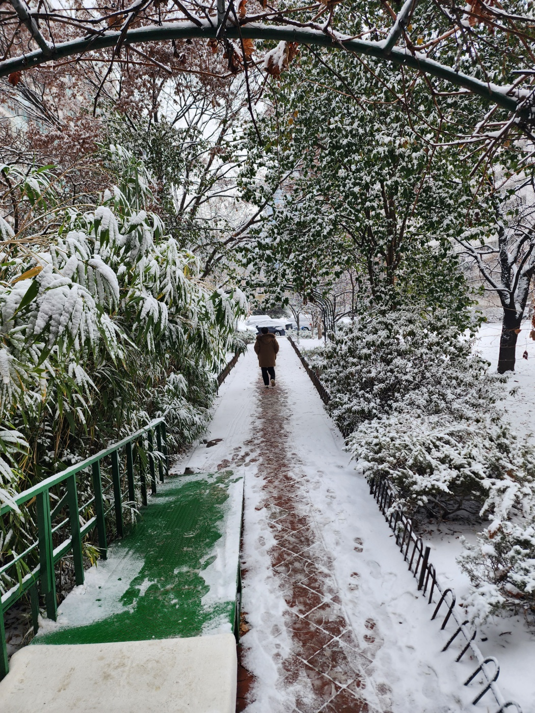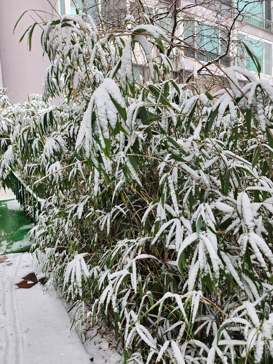 대나무 위에 눈이 폭쌓였지만 대나무는 씩씩한 것 같다 파릇파릇하다