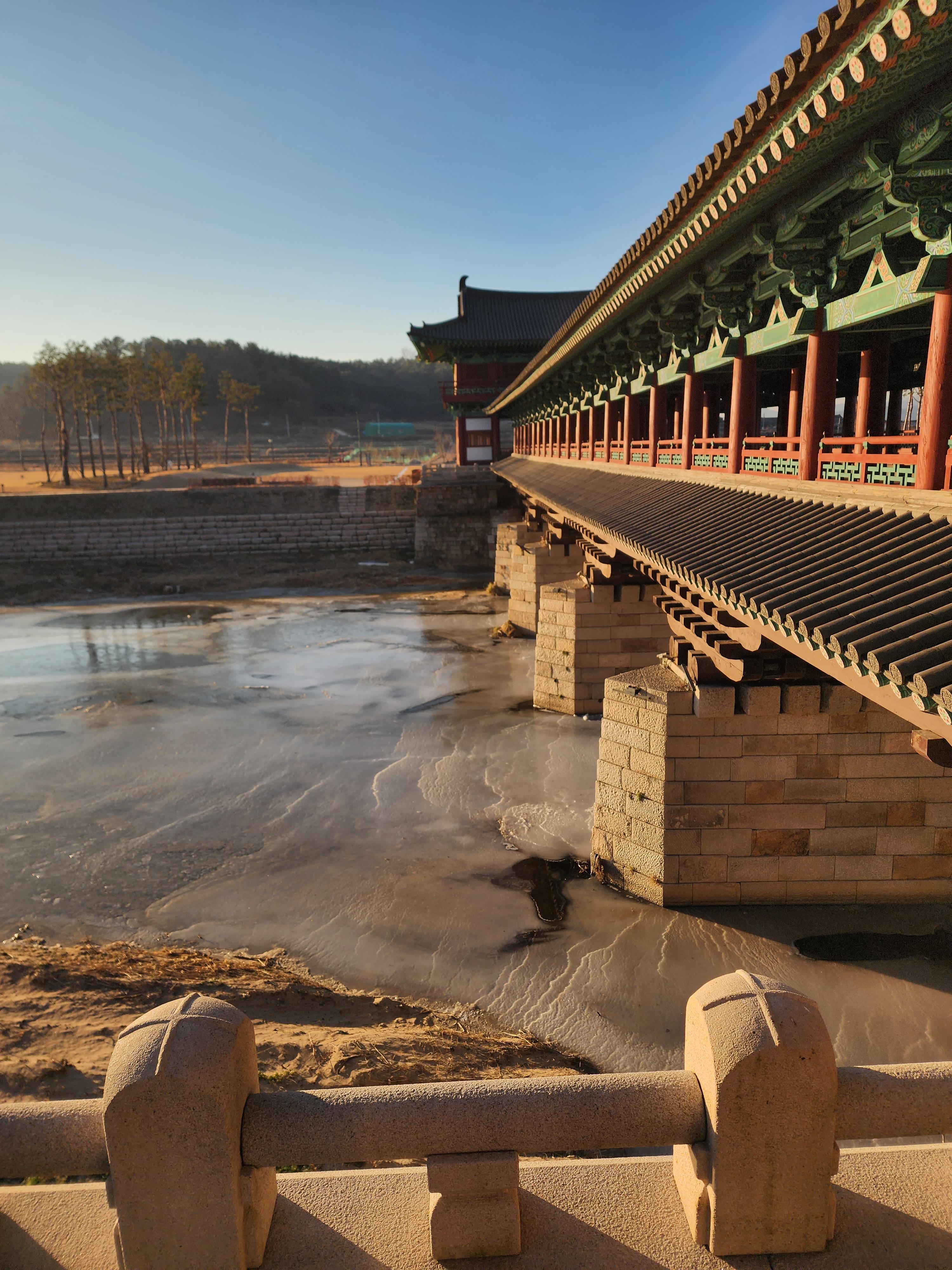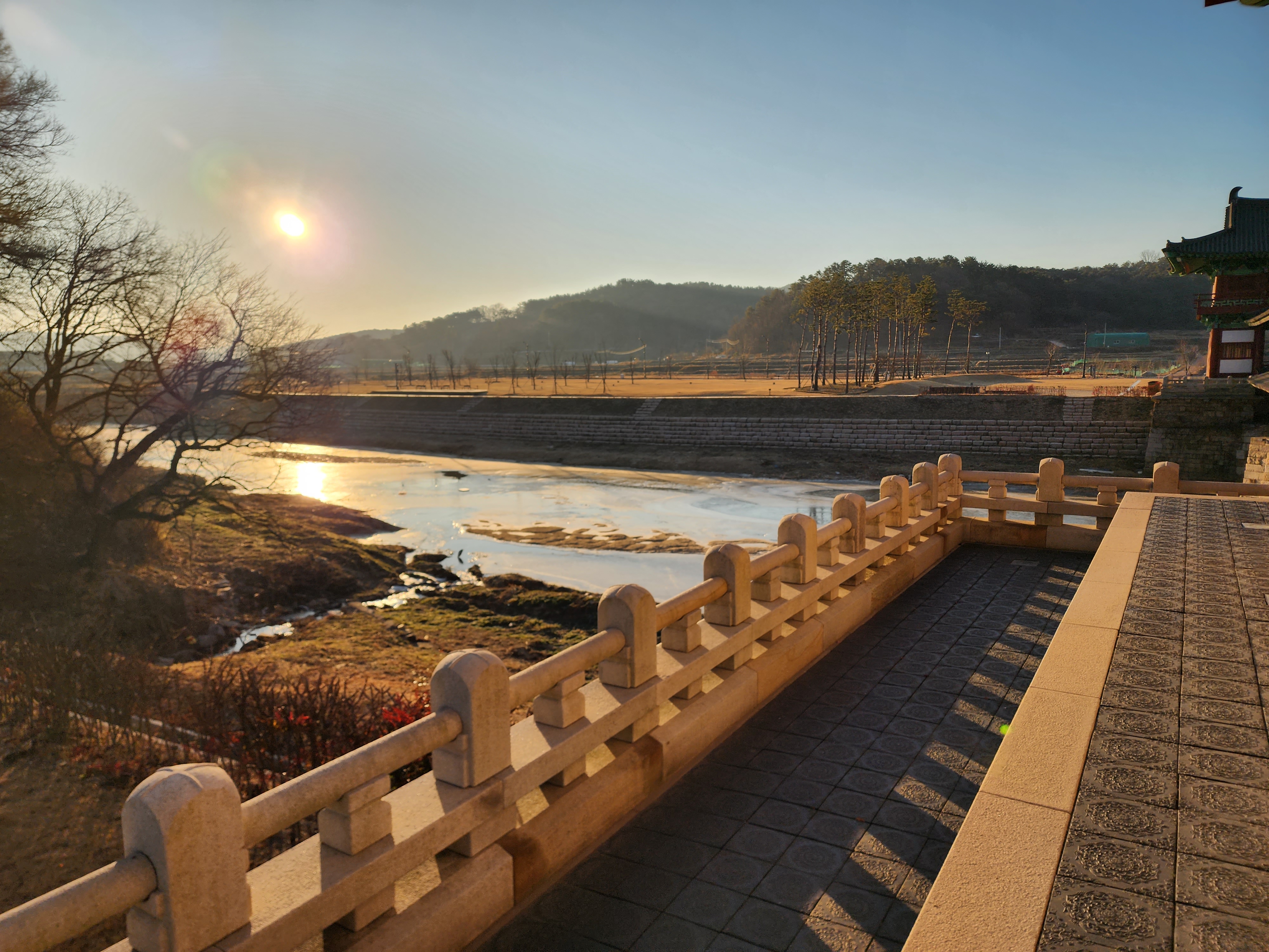 월정교는 강물에 월정교가 비쳐진모습이 장관인데 이번엔 얼은강을 보았다