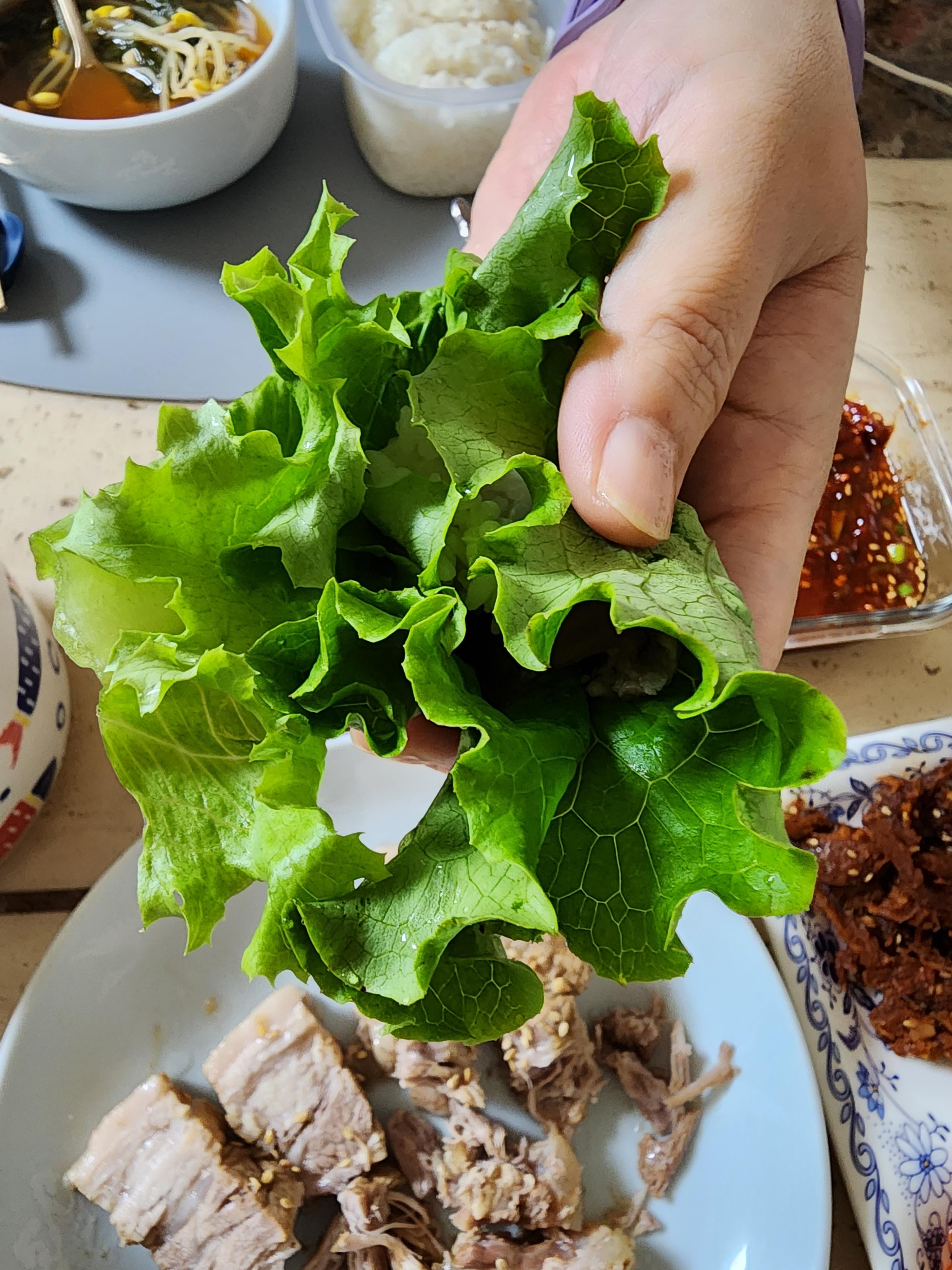 대학원준비 중인 딸아이가 엄마밥이 최고라며 카페에서 공부하다 말고 보쌈을 먹으면서 연신 맛있다고 한다