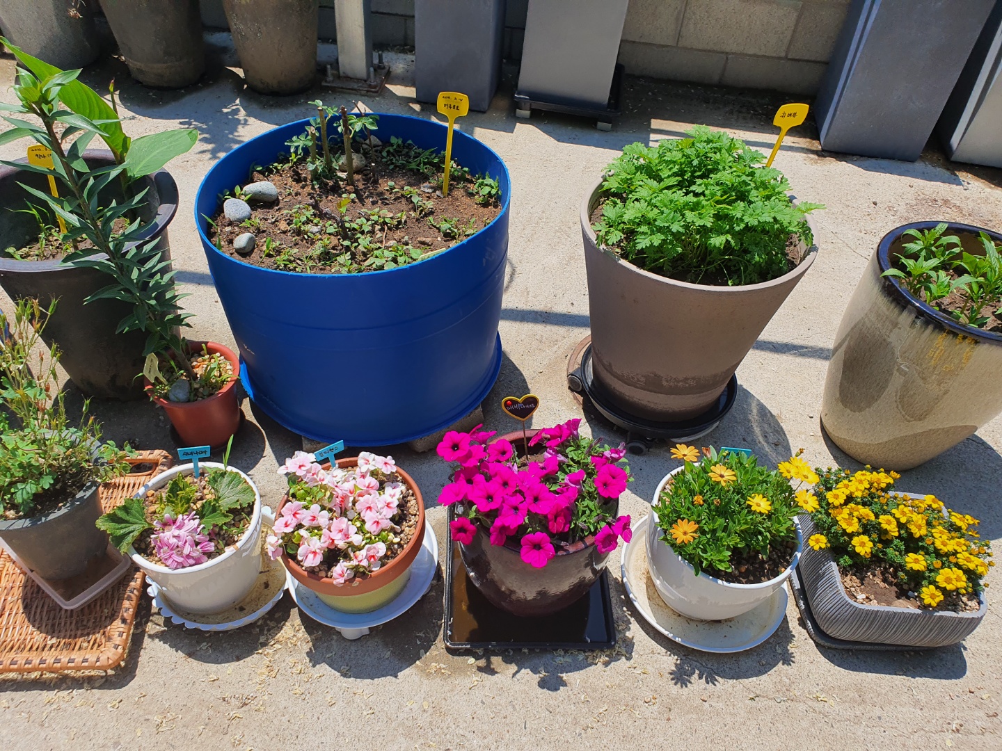 올해는 참 이것저것 많이 심어봤다 카페 꽃씨 은행에서 얻은 꽃씨로 싹을 튀어 화분에 심어 가꾸기도 하고 시장에 가서 꽃을 사다가 심어보기도 하고 참 많은 식물들을 접해보았다 친구가 와서 이것저것 너무 많이 심어서 예쁘지가 않다는 말도 듣고