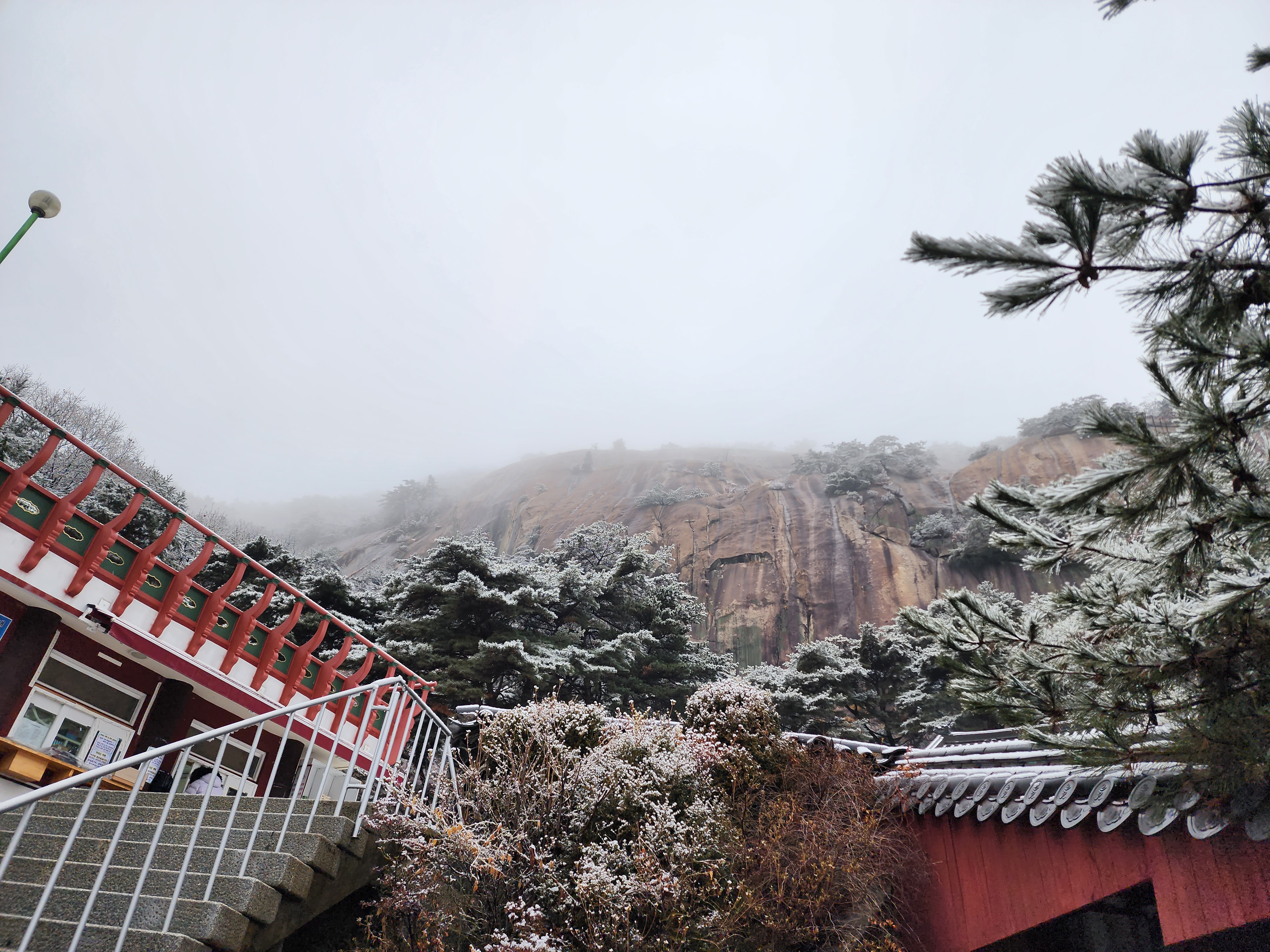 눈이 와서 바위색깔이 더 선명하다 그 위에 나무들도 색을 달리한다