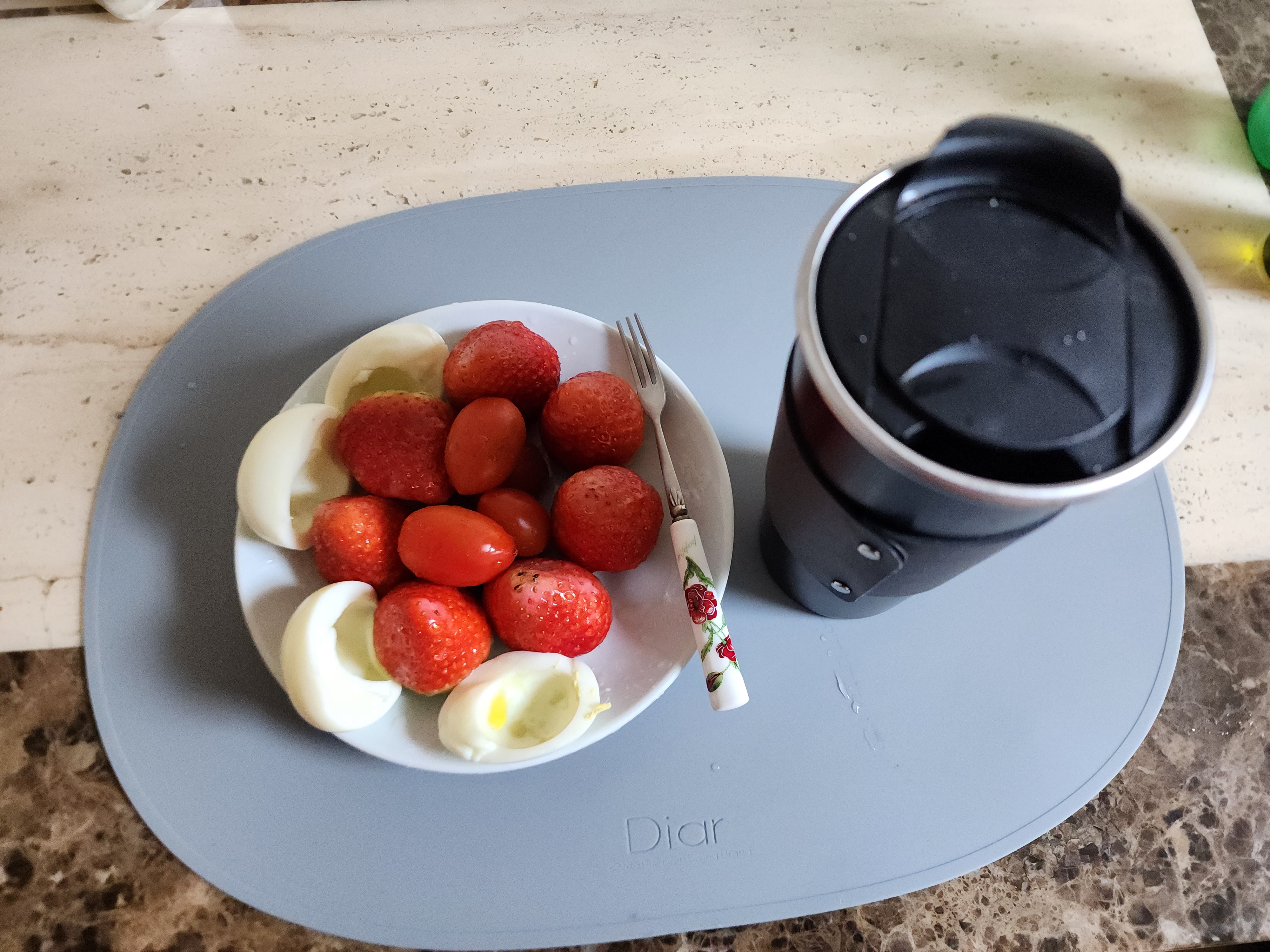 4주 차는 딸기 7개 계란 2개 방울토마토 5개 녹차. 5끼를 먹는다