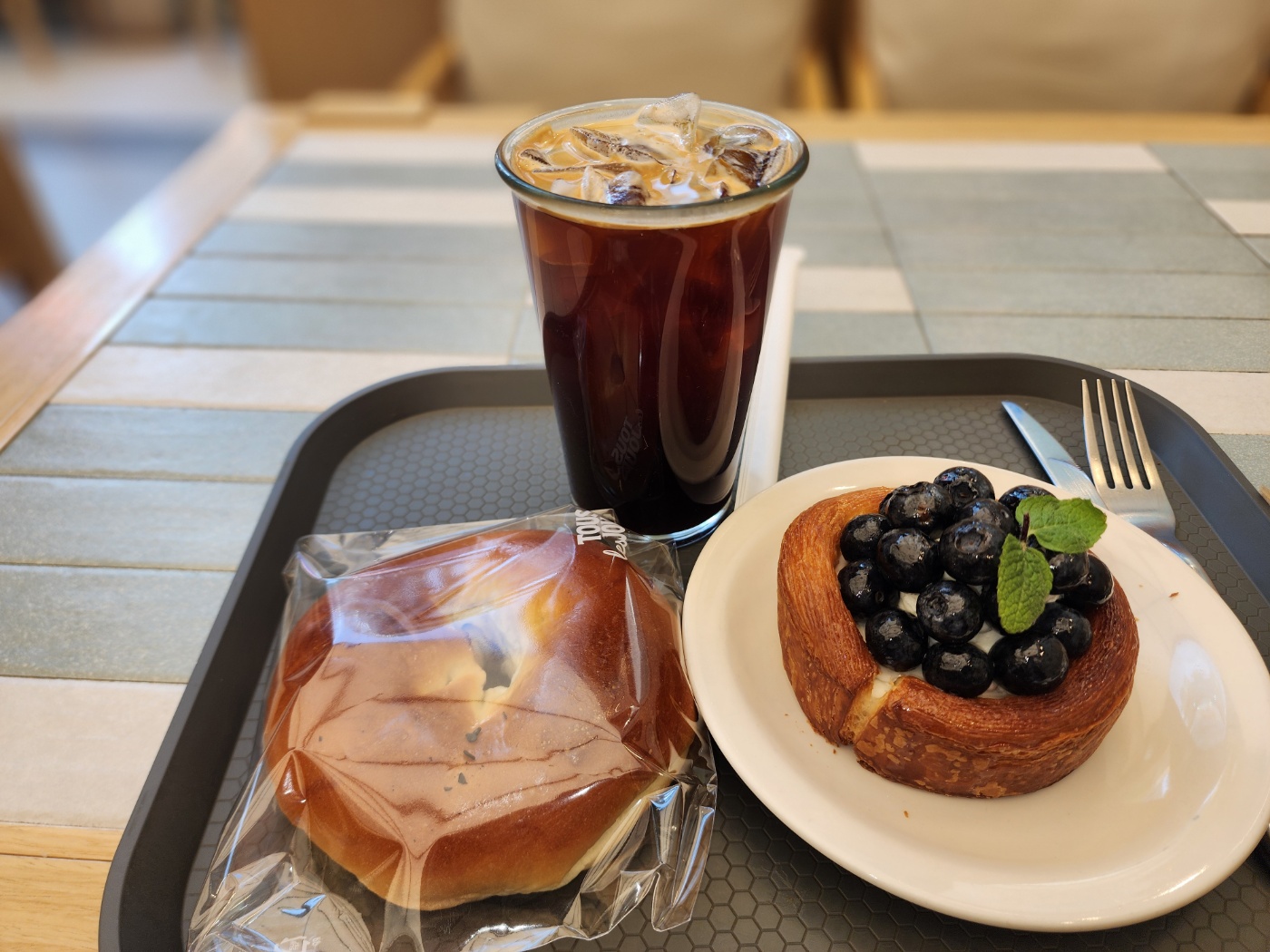 정말 너무하다 여기서 딱 두 개만 골라야 하는 즐먹마놀~~ 걱정되네! 차분히 블루베리요구르트패스트리(5,800원0를 쟁반 위에 얹고
