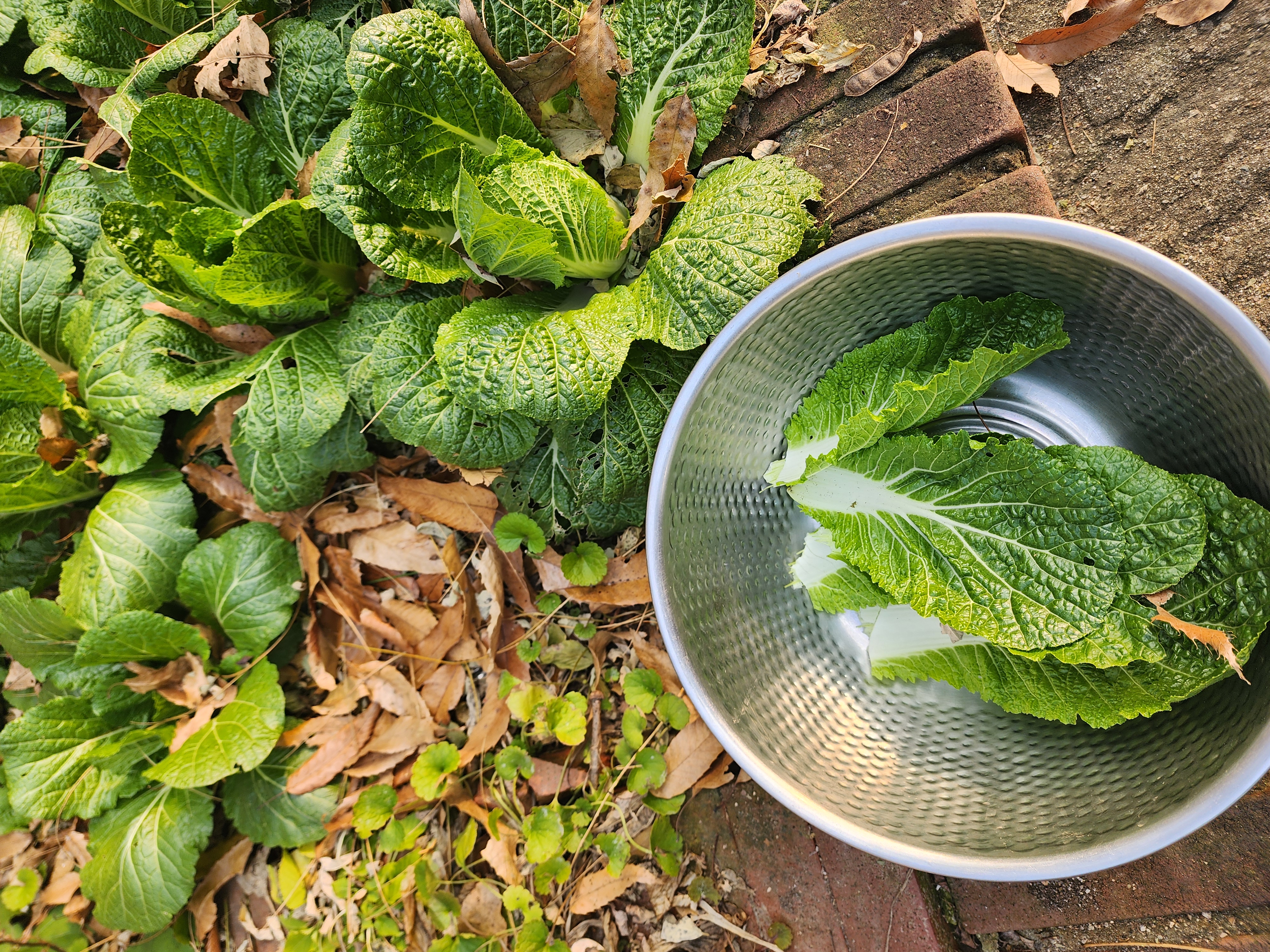 마당에 자라고 있는 배추는 김장김치도 안되고 그냥 쌈채소나 이런 메밀 전으로 딱이다