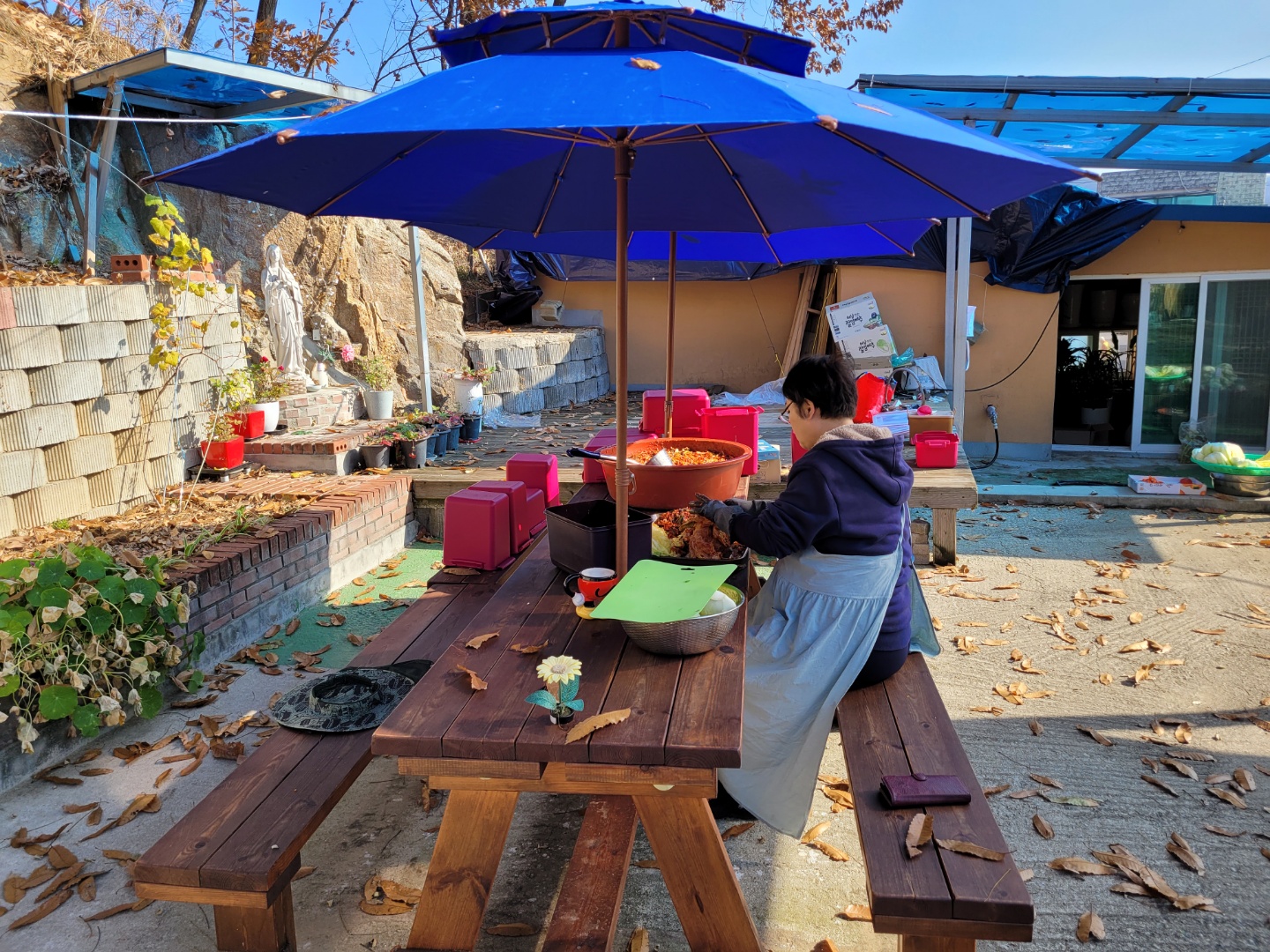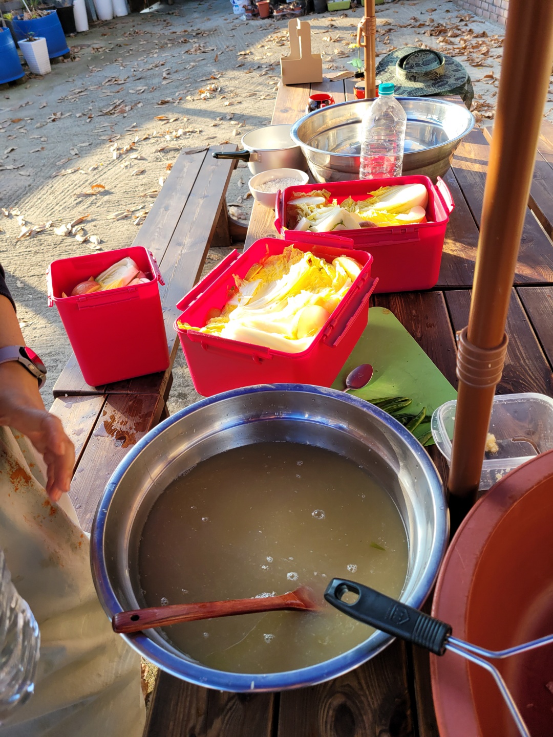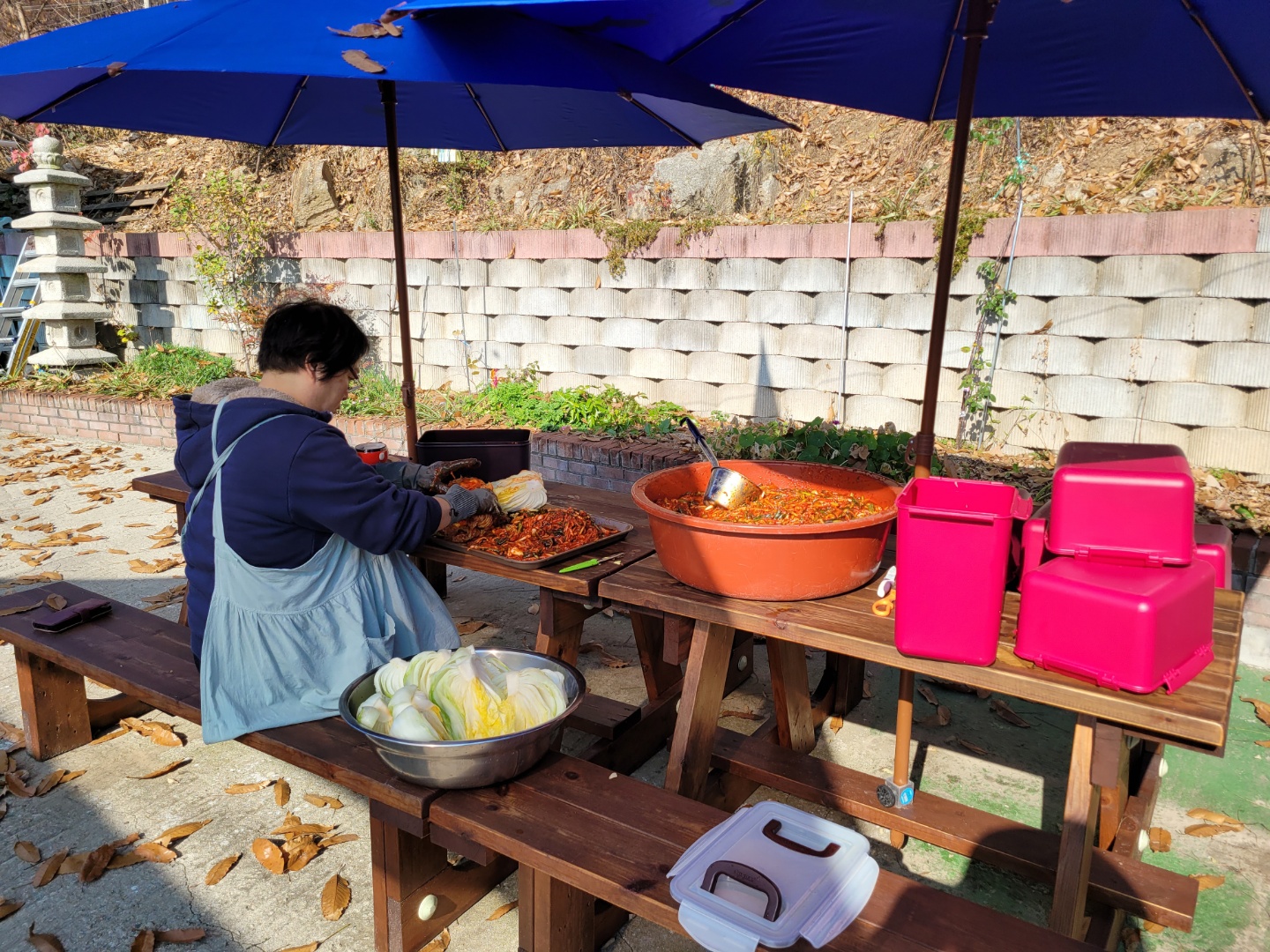 야외에서 하는 김장은 편하고 걸리적거리지 않고 좋아서 편하게 김장을 할 수 있다