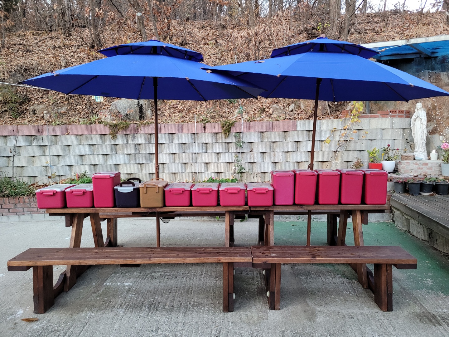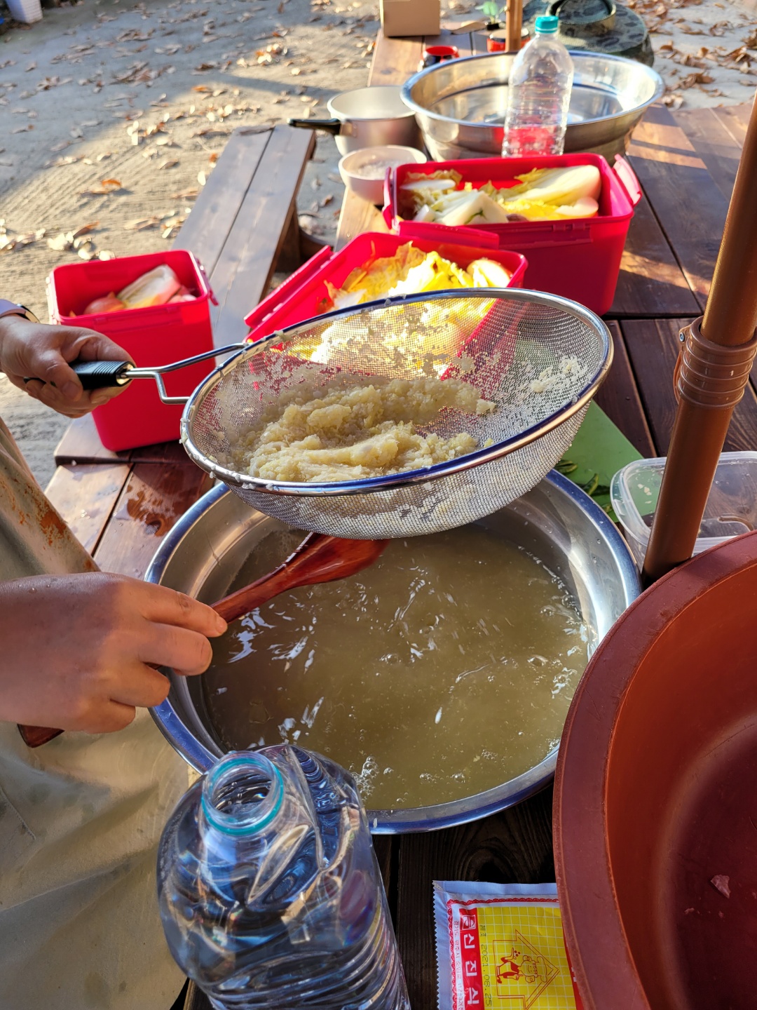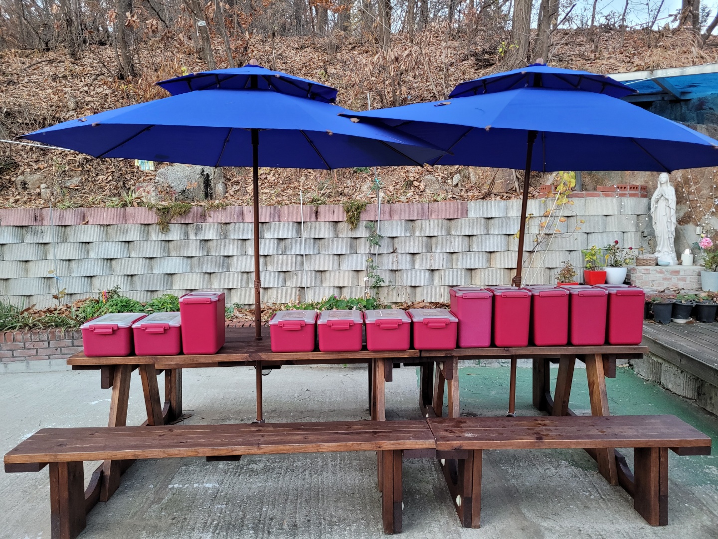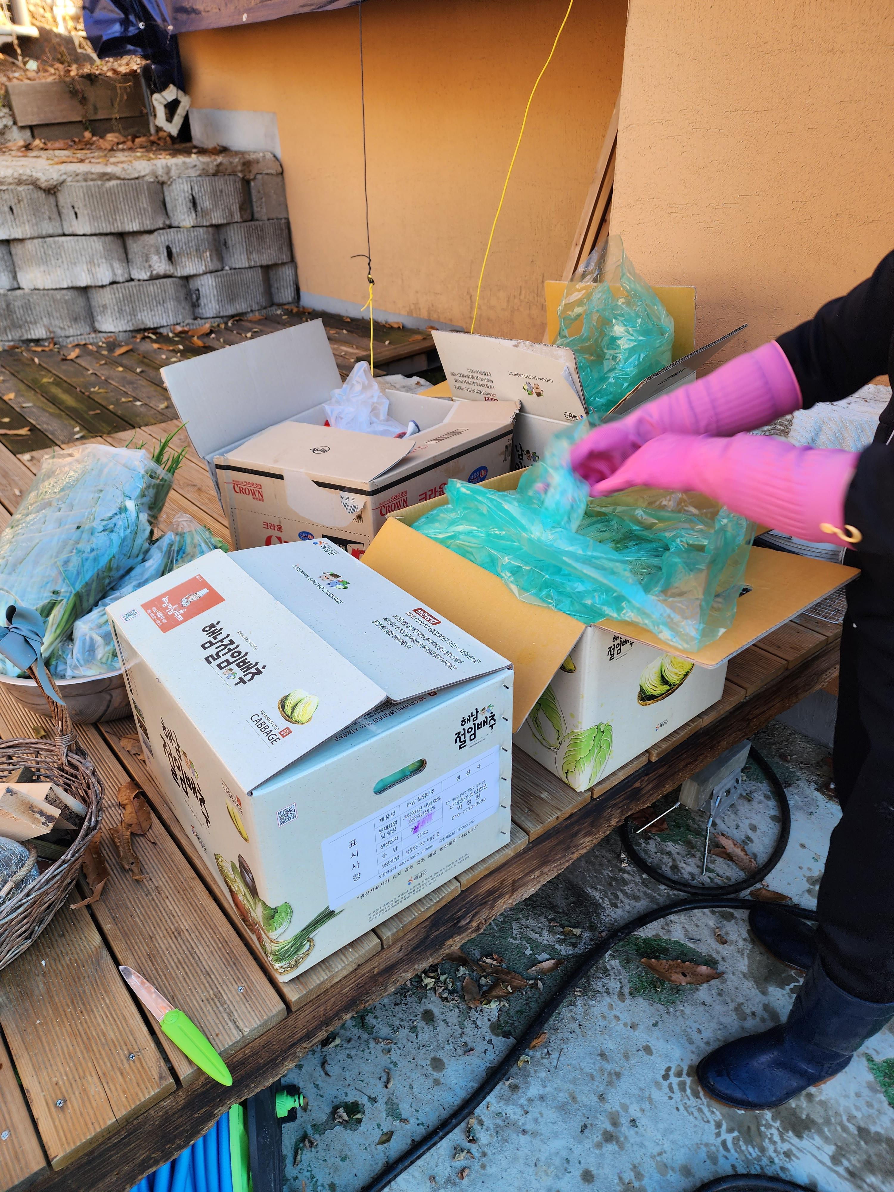 야외에서 하는 김장은 편하고 걸리적거리지 않고 좋아서 편하게 김장을 할 수 있다