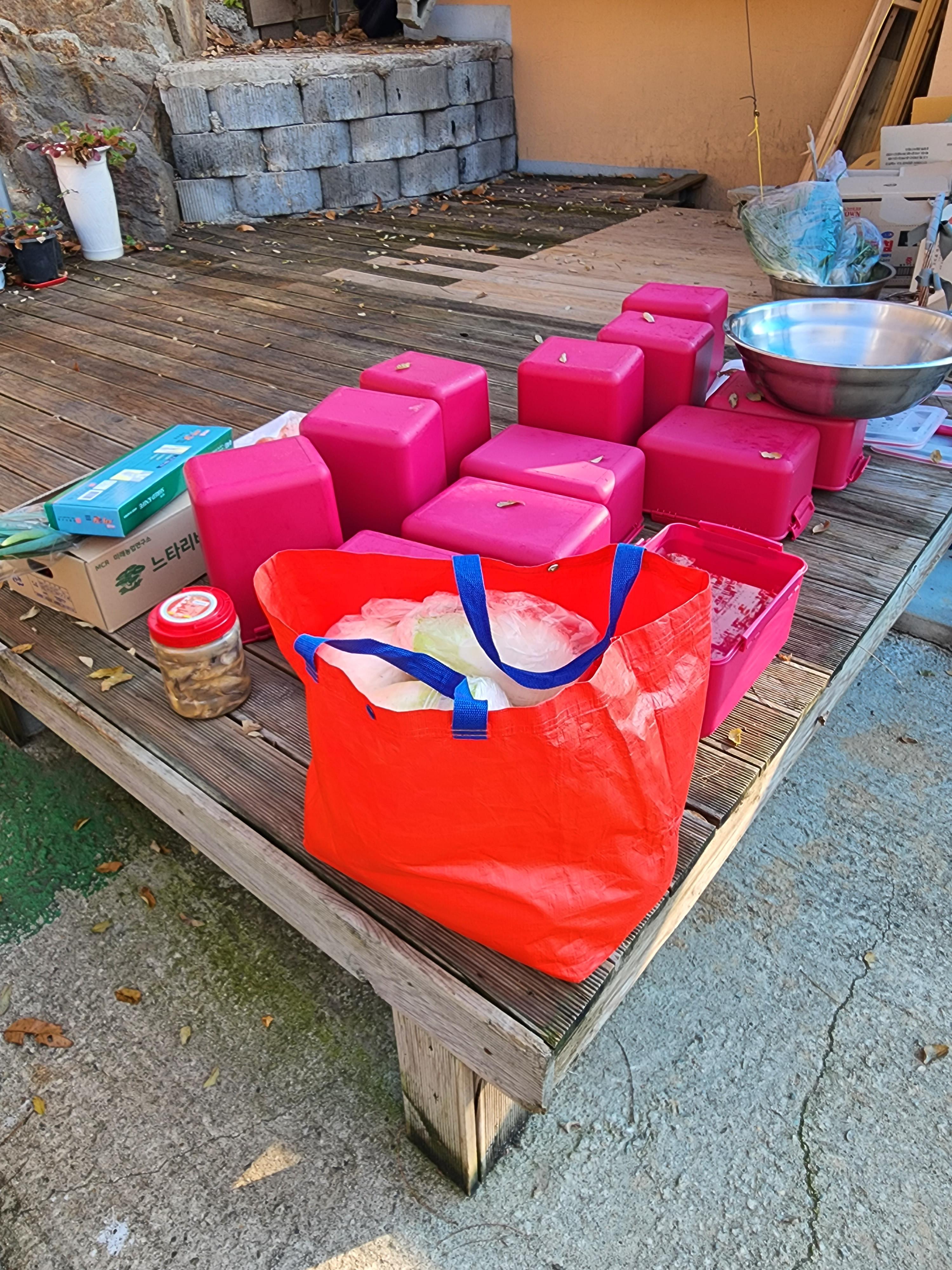새우젓과 큰 다라를 친정엄마한테서 가져오고 고춧가루도 가져오고