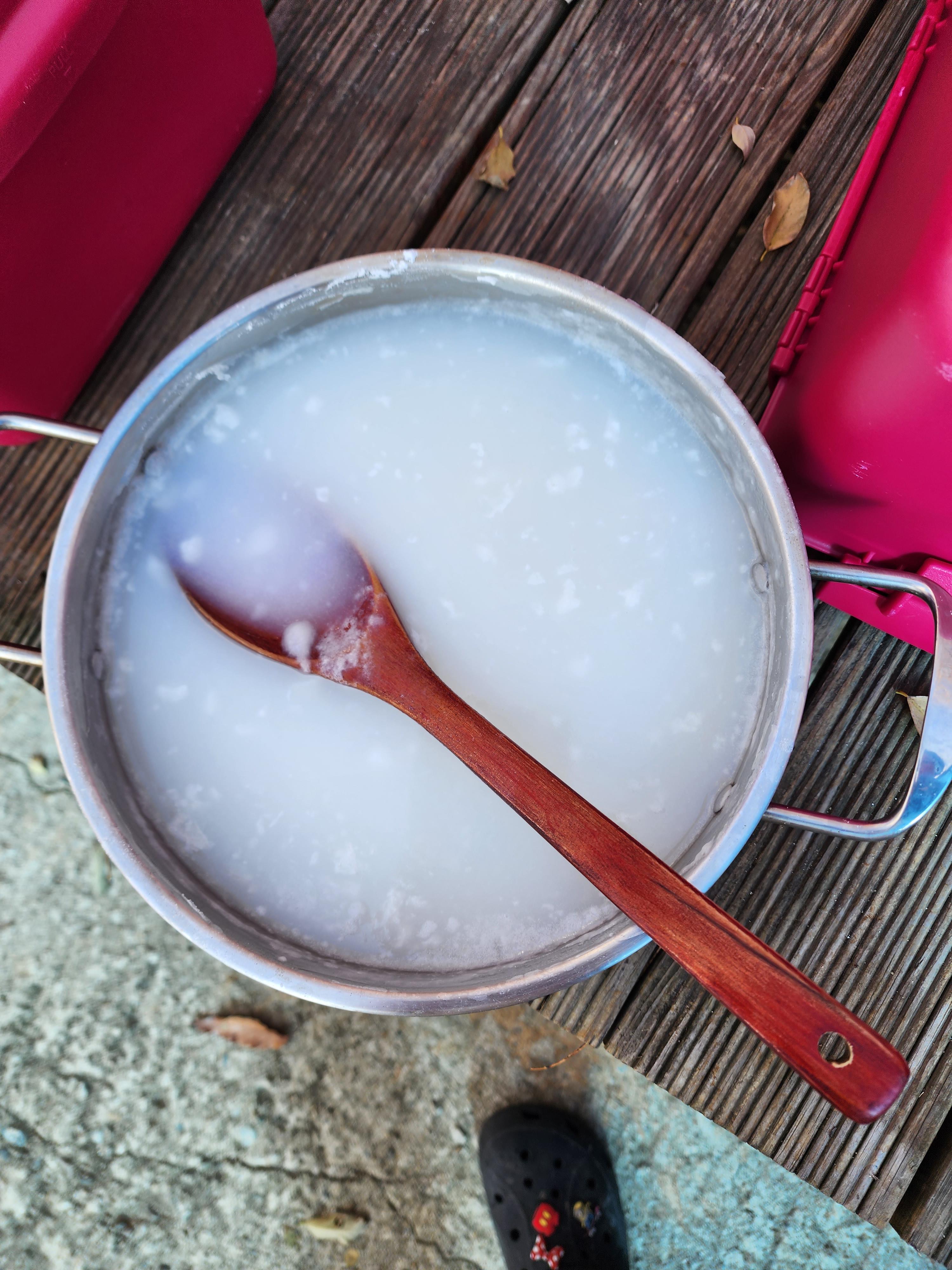 난 쪽파를 다듬고 육수를 빼고 찹쌀풀을 쑤고 수육을 삶고 밥을 씻고