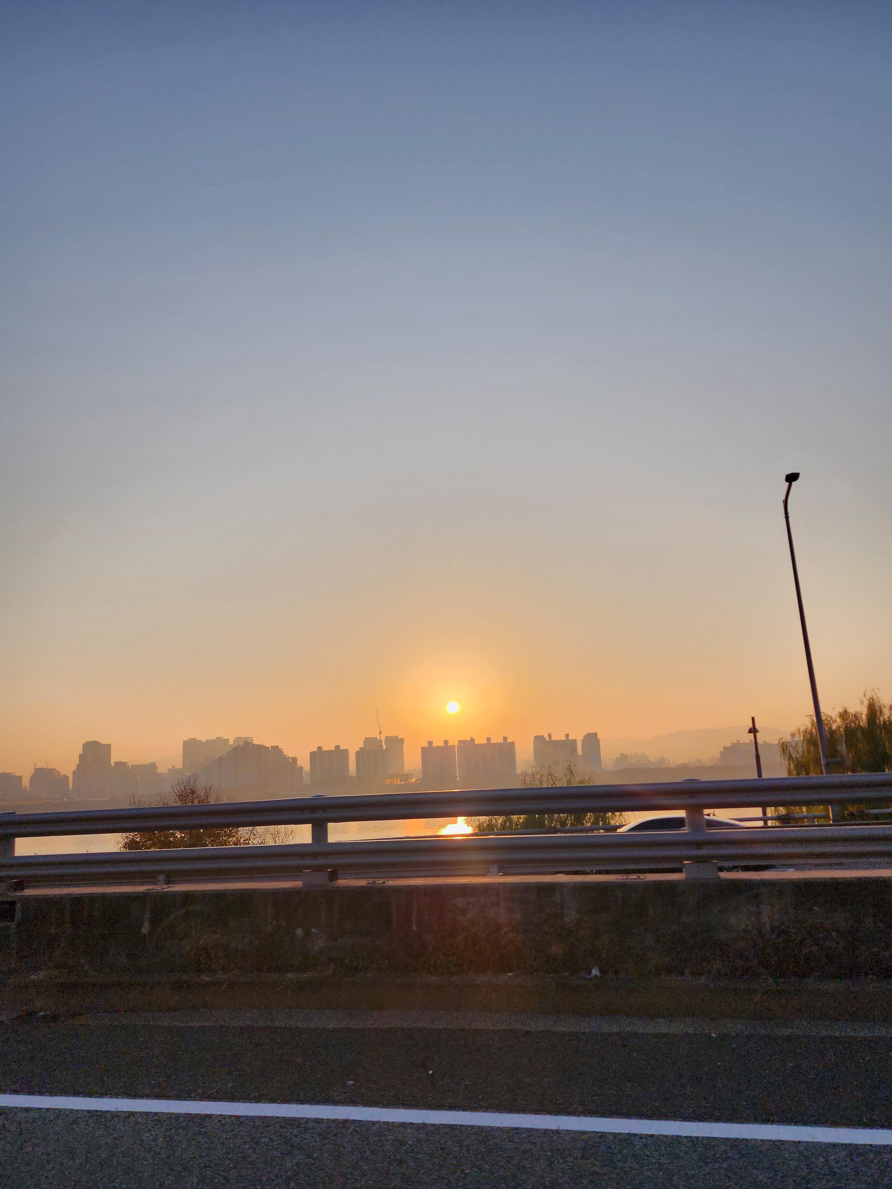 남편과 새벽에 김장하러 가는 길에 일출 모습이다 7시에 일어나서 출발한 거인데 이리 새벽 같은지 ~