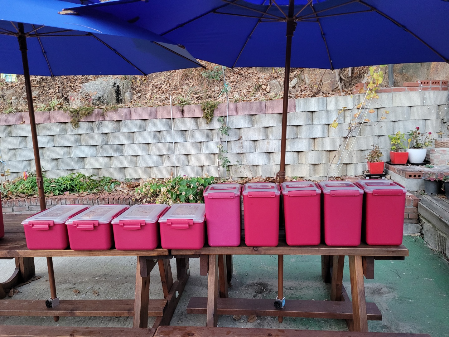 예쁜 우리 김치통 이틀 정도 후 김치냉장고에 들어갈 것이다