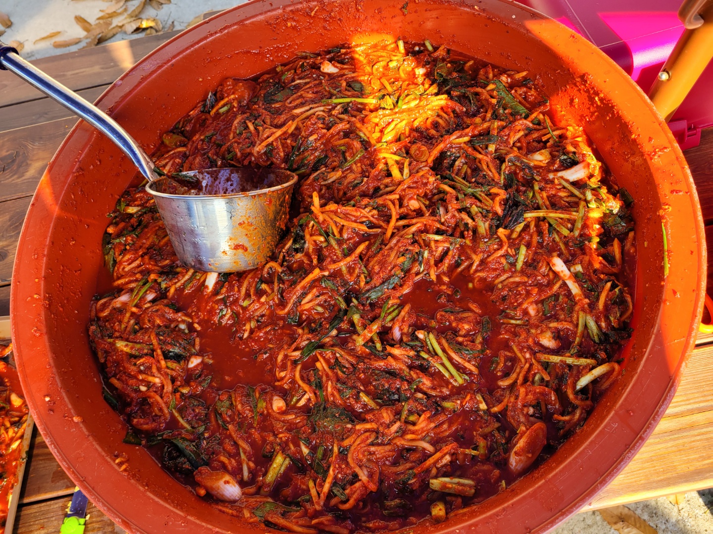 김장은 속을 버무릴 땐 엄청 많아 너무 남을 것 같아 처덕처덕 듬뿍 배추 속을
