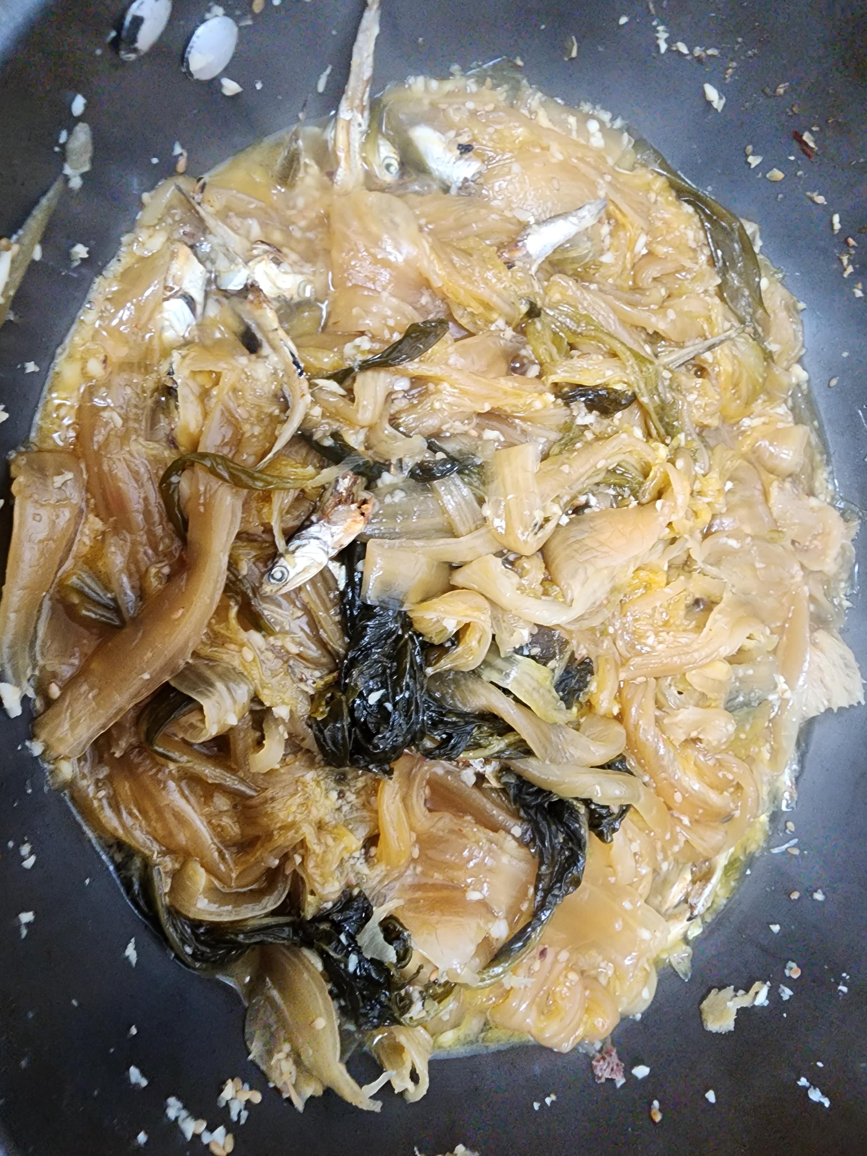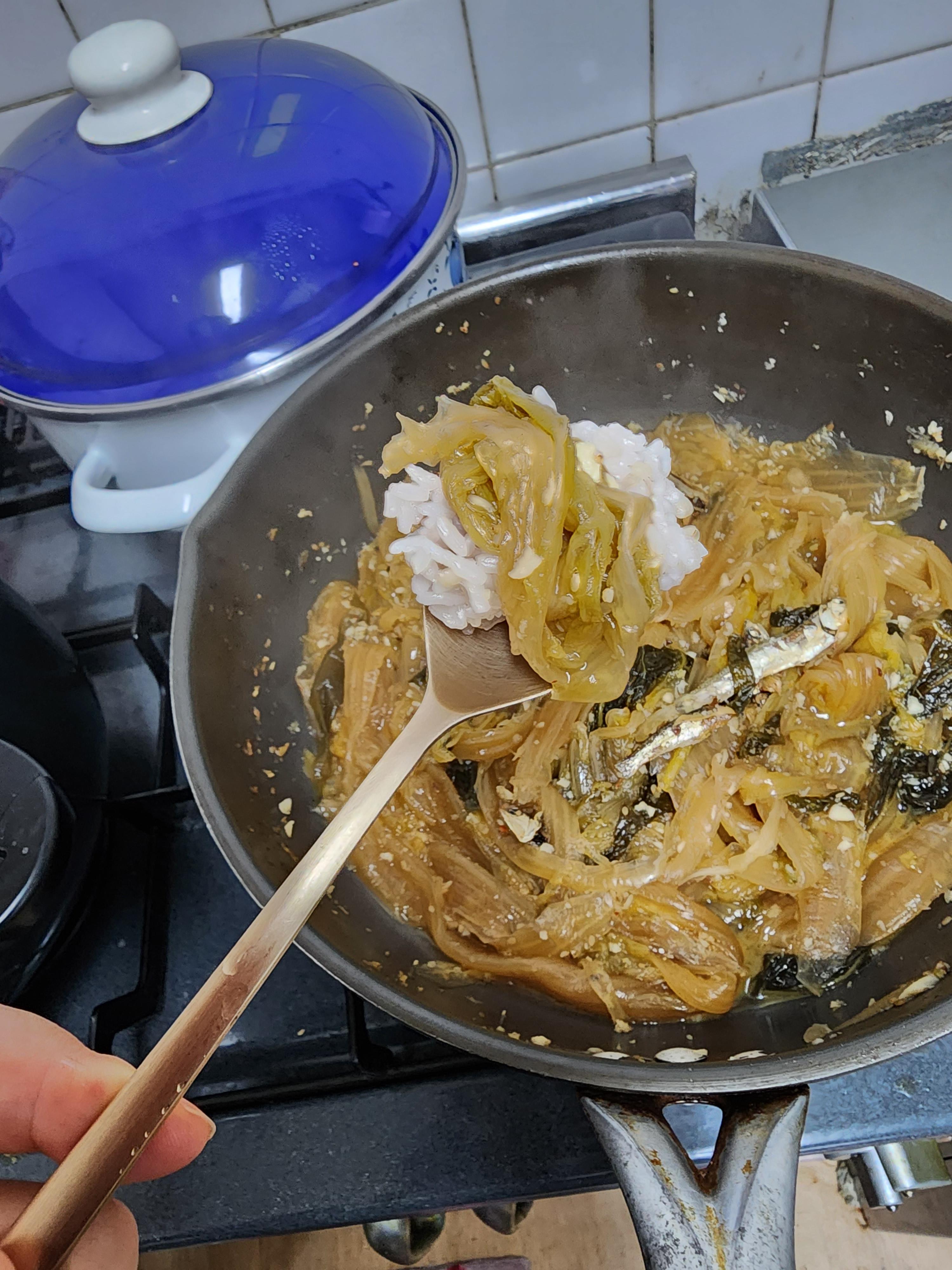 하지만 묵은지는 참기 힘든 음식이다 들기름냄새가 솔솔 나면서 약간은 심심한 멸치육수에 묵은지 볶음은