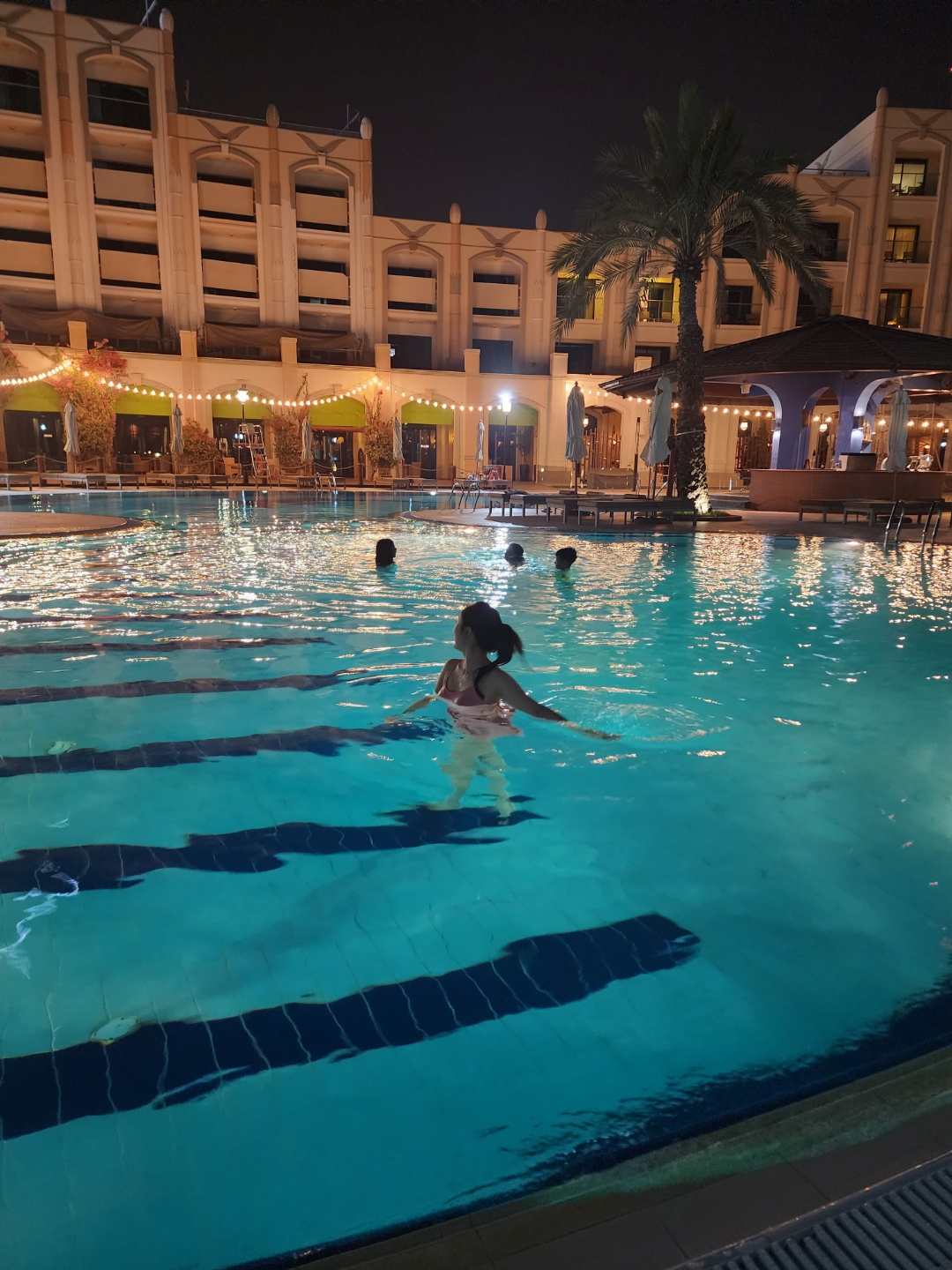 그래서 무리하지 않게 수영으로 워밍업을 하고 편안한 밤을 즐겼다