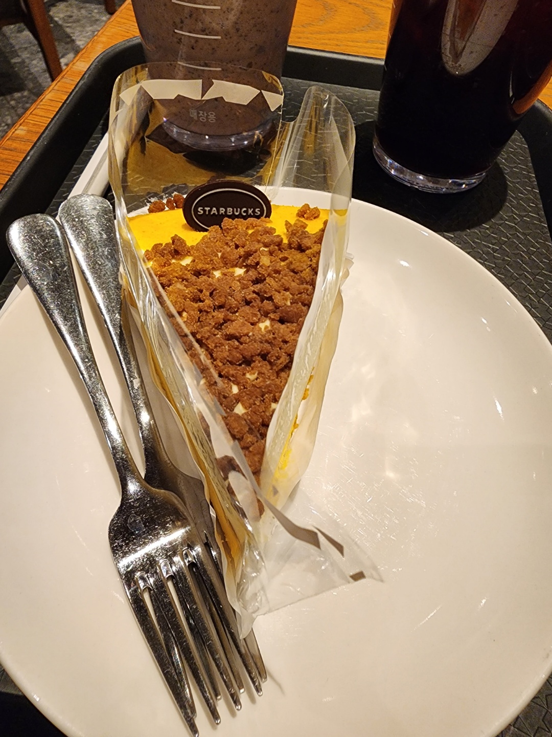 프라푸치노는 달지 않고 부드럽고 찐득한 케이크는 얼마나 맛있는지 달지도 않고 호박이 씹히면서