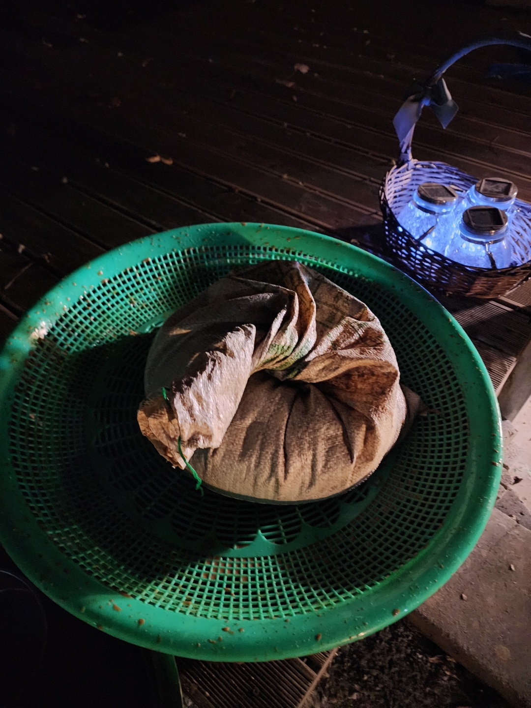 여럿차례 한광주리만큼만들어 위에 물을 따라 버리니 앙금이 5센티정도 남아있었고