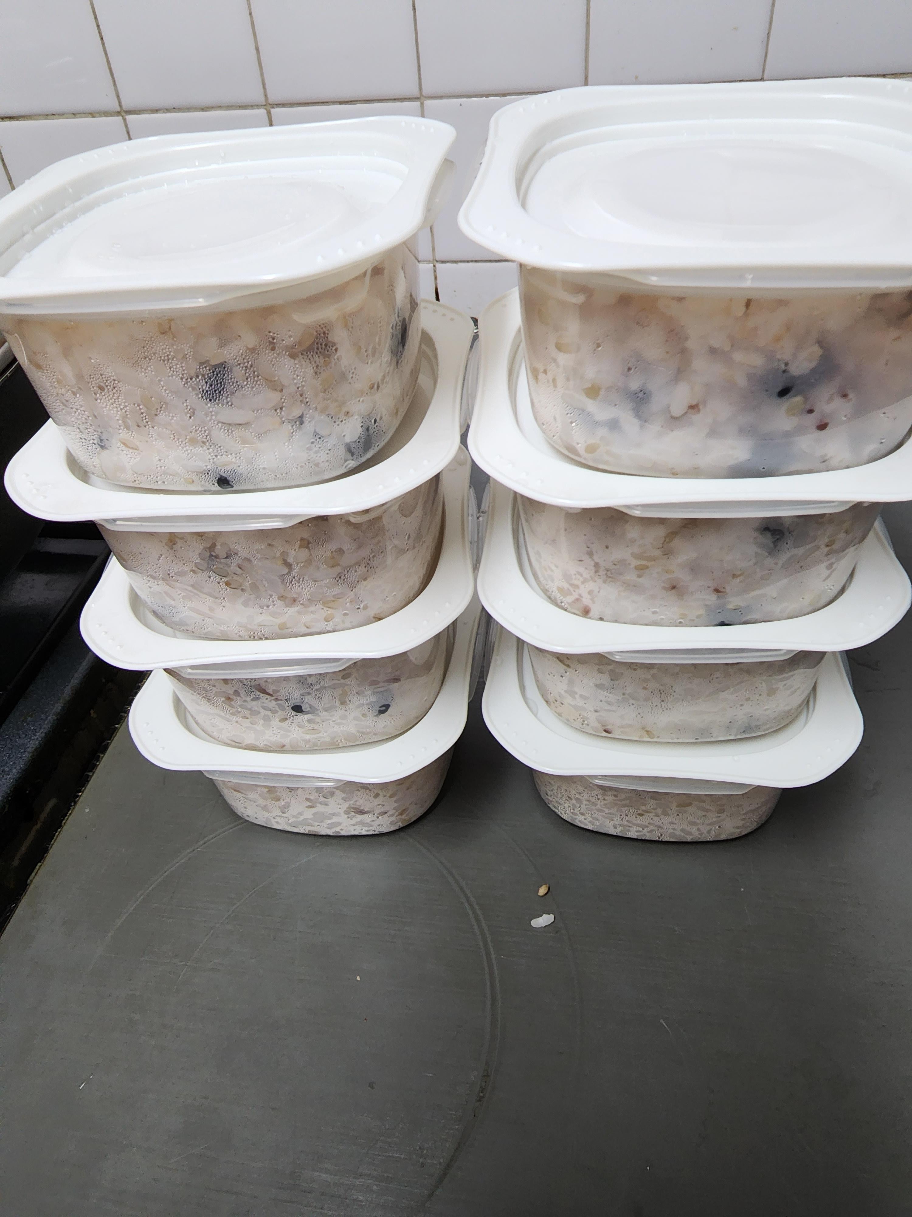 또 밥을 해서 밥용기에 퍼서 냉동시켜 놓는다. 가서 당장 밥을 해 먹기가 어설픈 테니