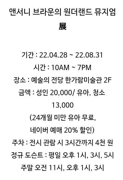 아이와함께 하는 문화생활 앤서니 브라운의 원더랜드 뮤지엄전 추천합니다