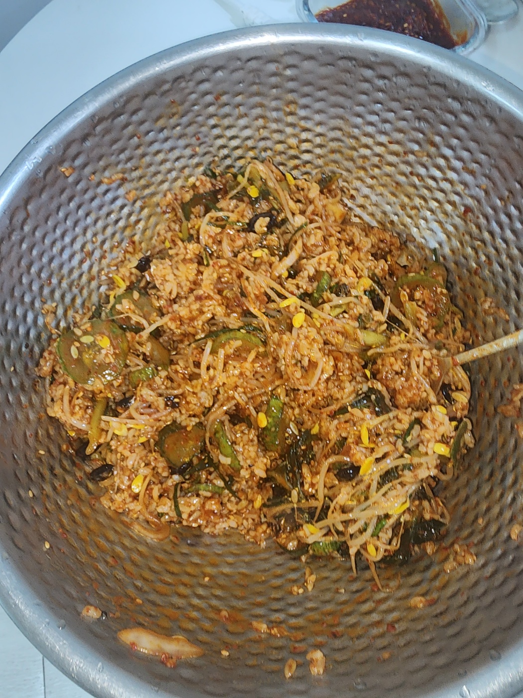 그리고 양푼을 긁으면서 먹어야 제맛이 나기 때문에 꼭 양푼으로 비벼야 할 것이다