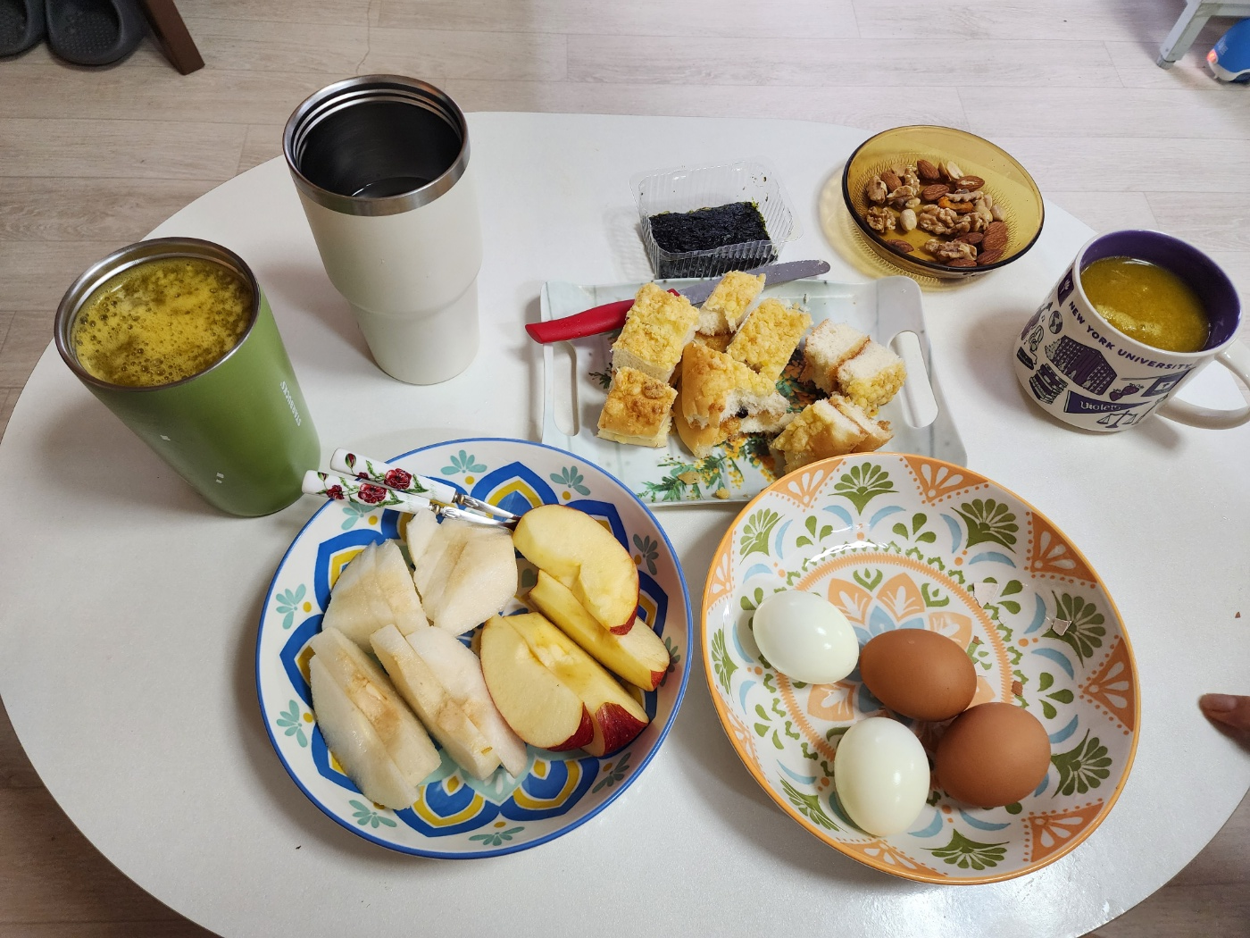 아침에 계란과 호박두유로 아침을 먹으니 건강해지는것같다