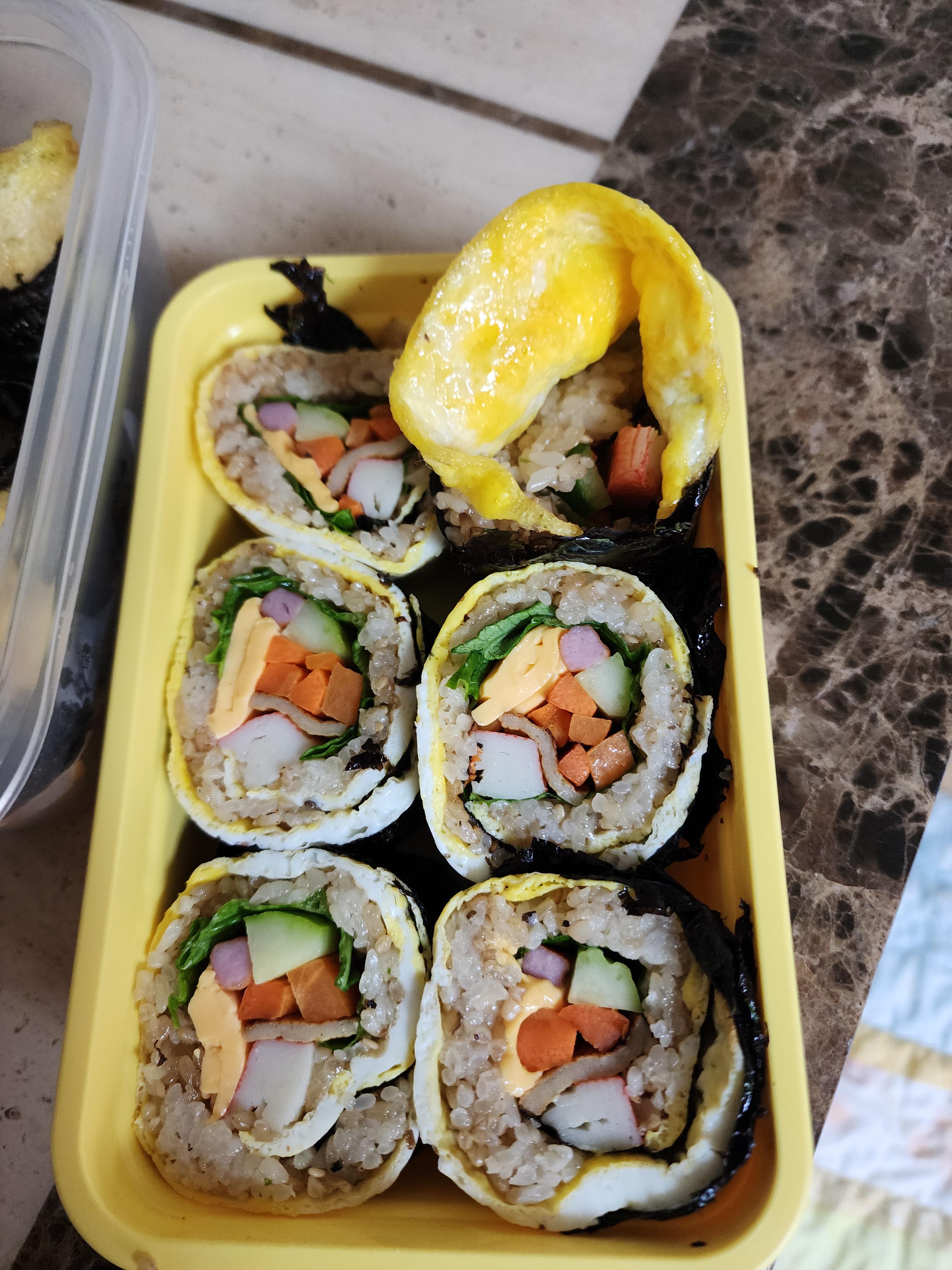 김밥은 계란을 많이 넣으면 좀 느끼 하기에