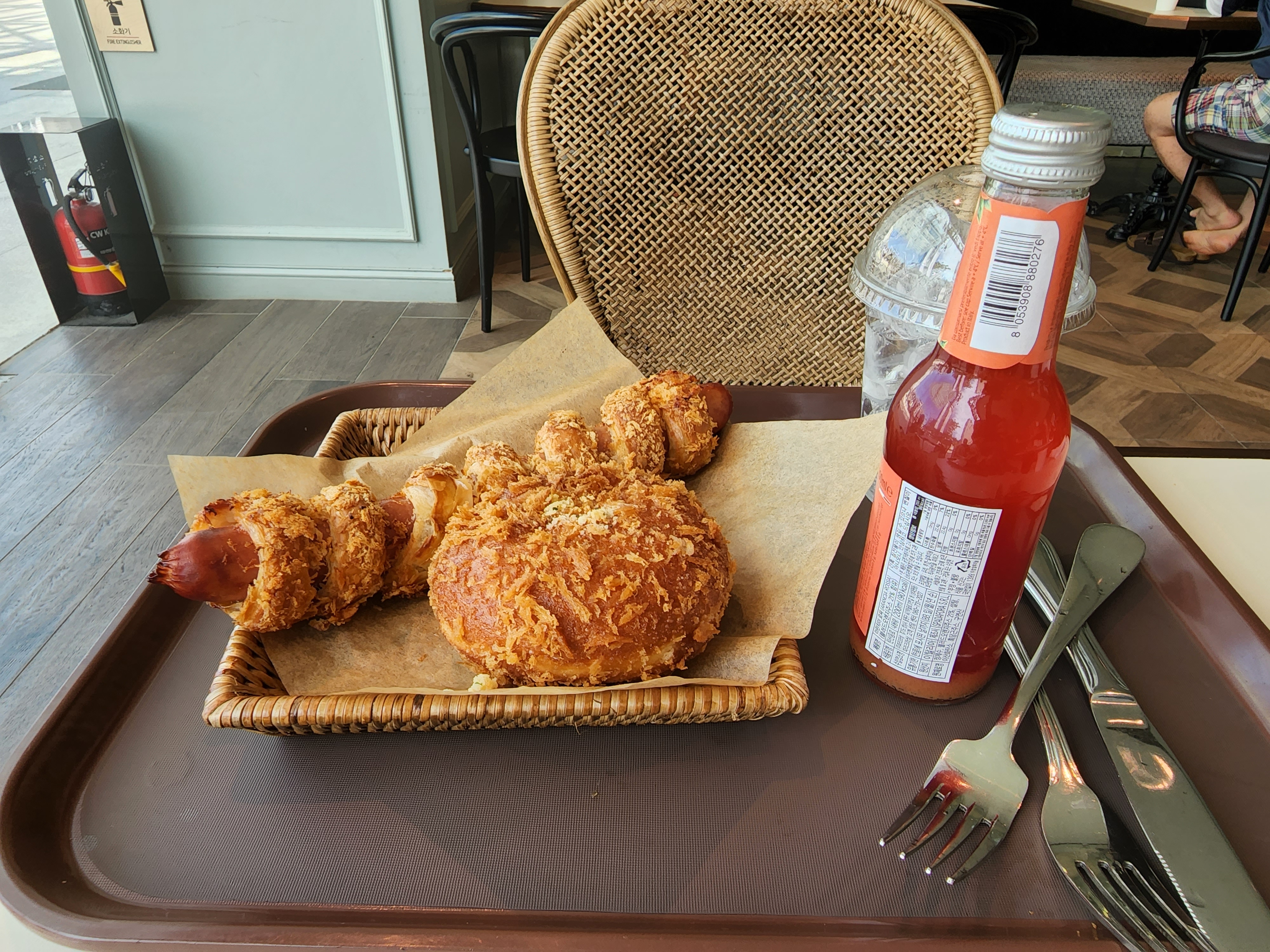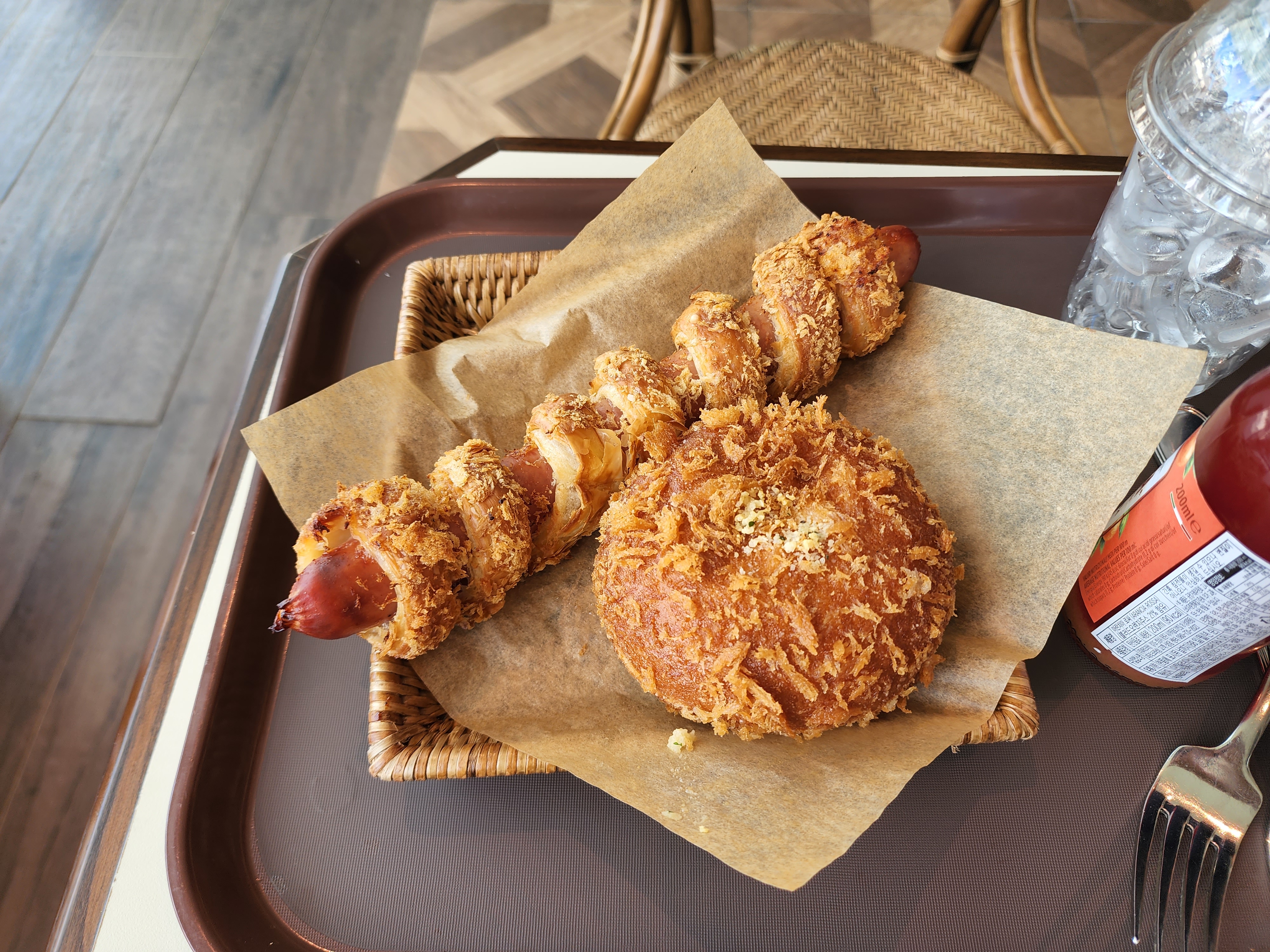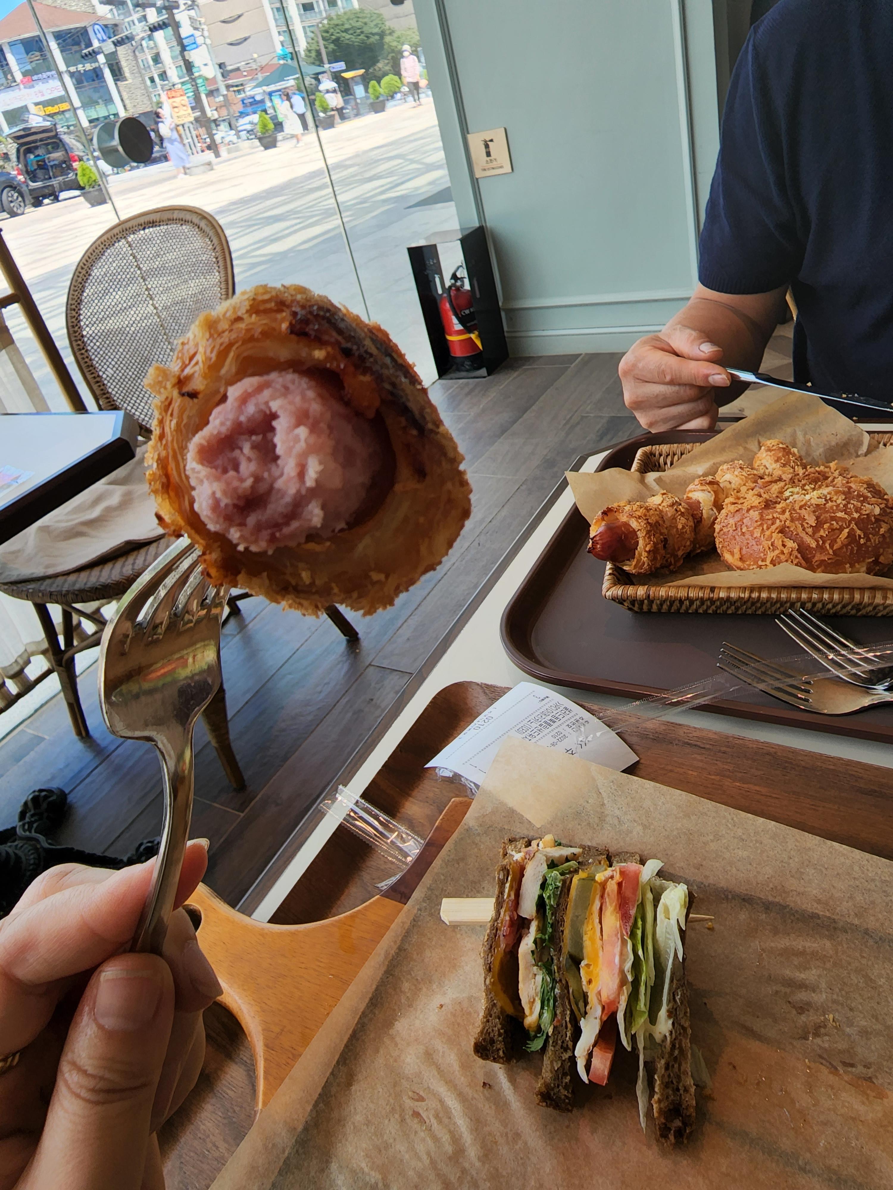 샌드위치옆 소금빵종류예요 종류가 3가지정도 저흰 소세지 페스츄리를 선택 엄청크고 가성비도 좋았어요