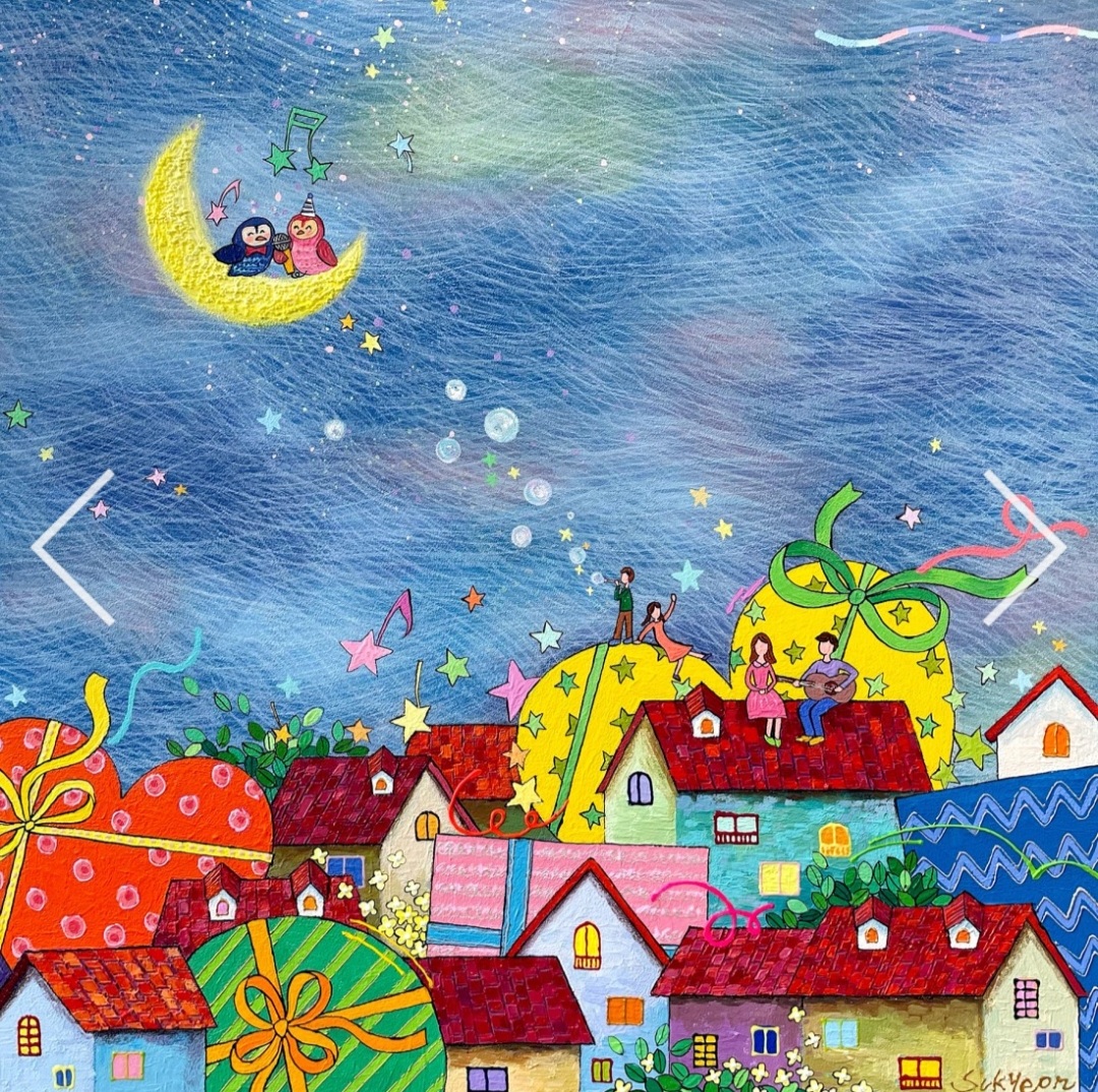 별이 내리는 밤은 눈이 부시는 그림이다 마치 가수 제니한테 선물해야할 그림처럼 화려하고