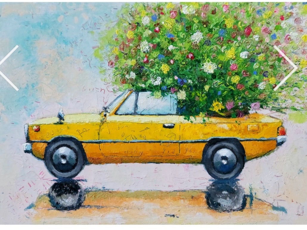 노란 포니자동차위천장을 뜯은 차라고 하는 설명과 화가는 공학박사이며 화가라고 하네
