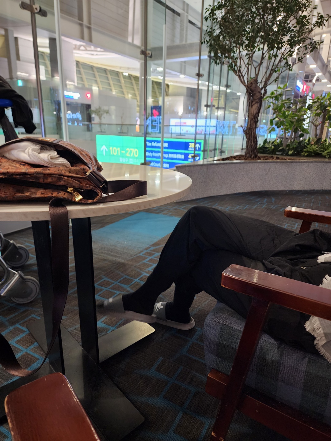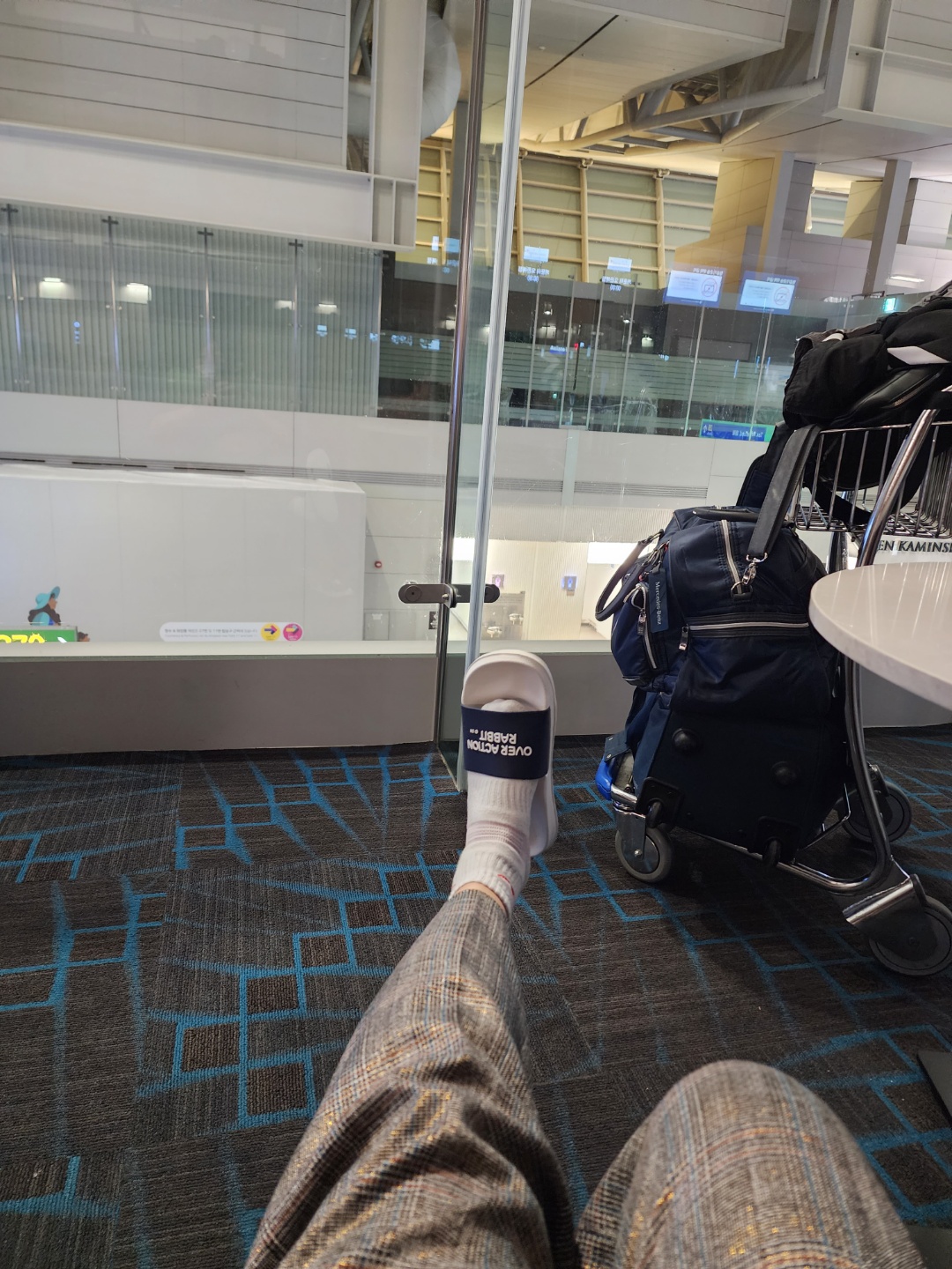 공짜인데 의자가 넘 편해요 여기서 슬리퍼로 갈아신고 만반에 준비하면서 기다렸죠