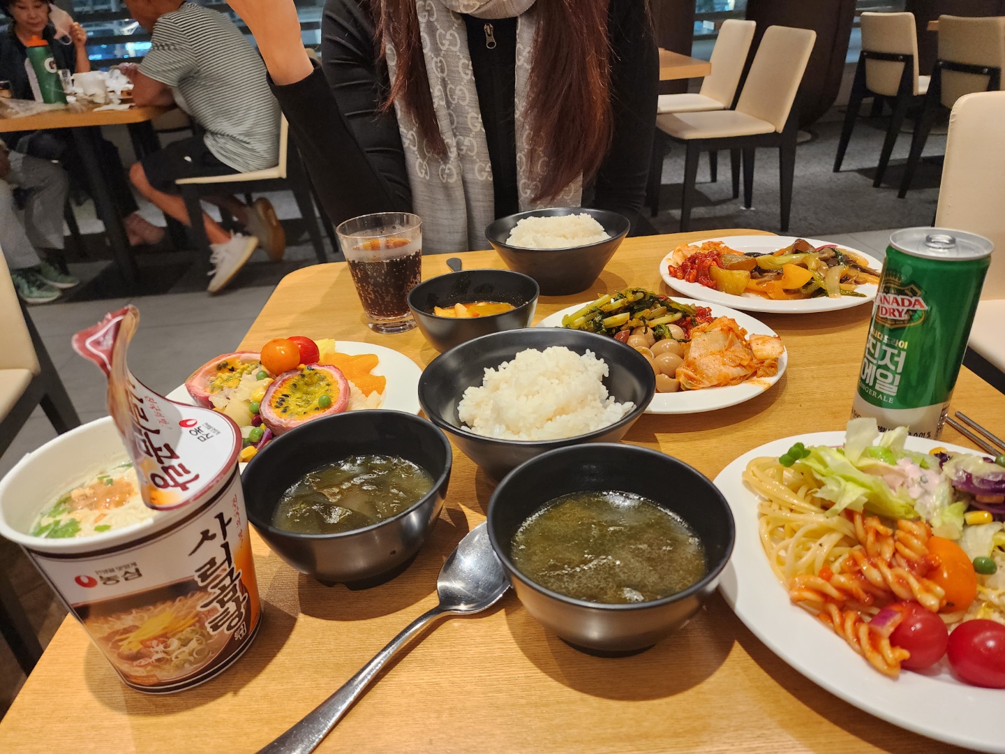 하지만 요래 급하게 담긴 음식들로 배를 채웠어요 모든 면세점이든 음식점이든 이시간은 문을 닫았더라구요