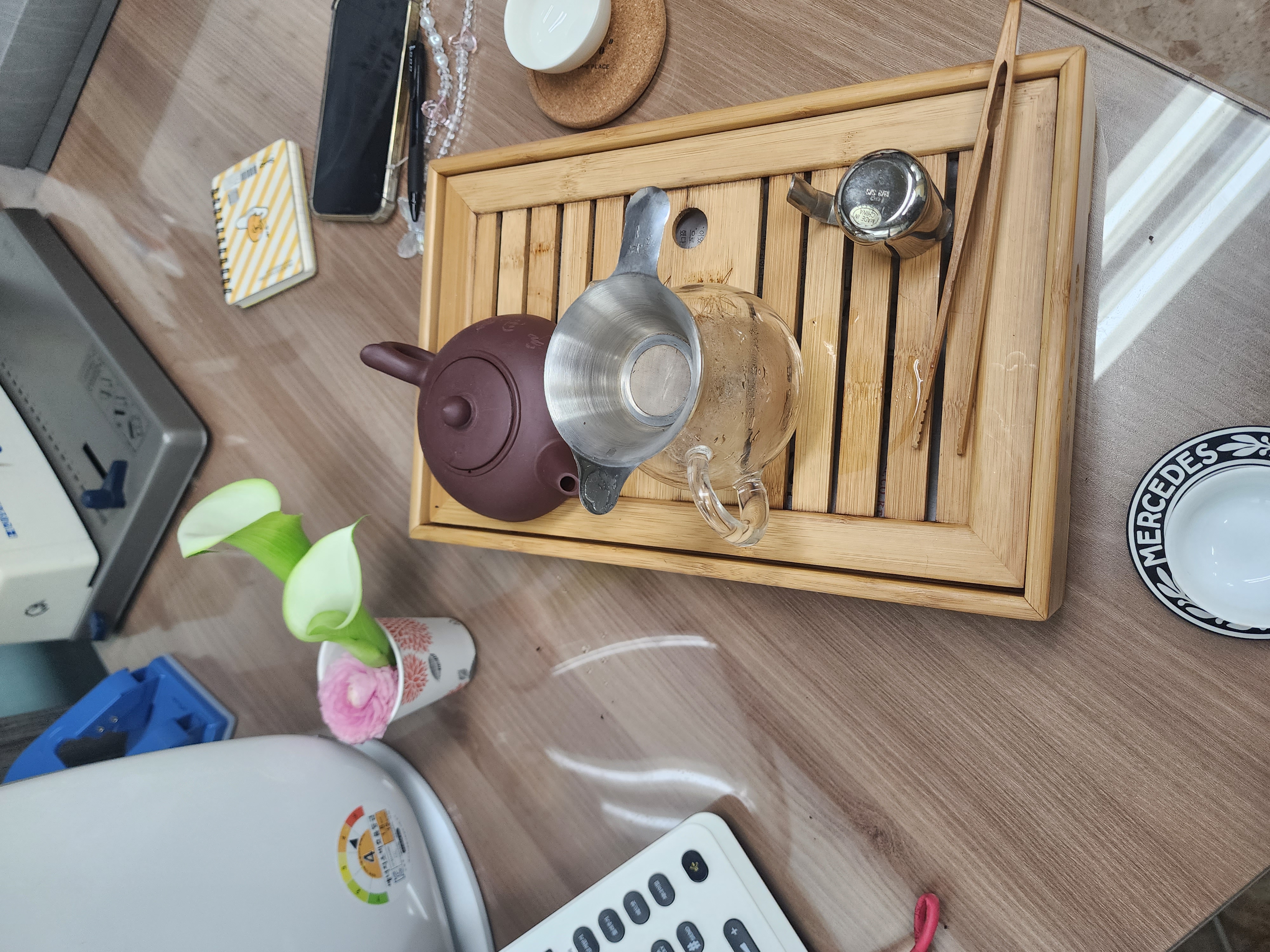 난차를 대접하고 작은 꽃병에 불이 들어오는 병에 꽃을 꽂아 커피와 샌드위치와 선물했다