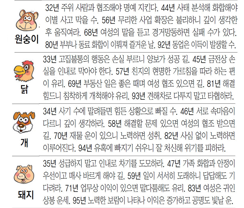 재미로보는 오늘의 운세 /씨 부린 농사 곳간이 든든해진다