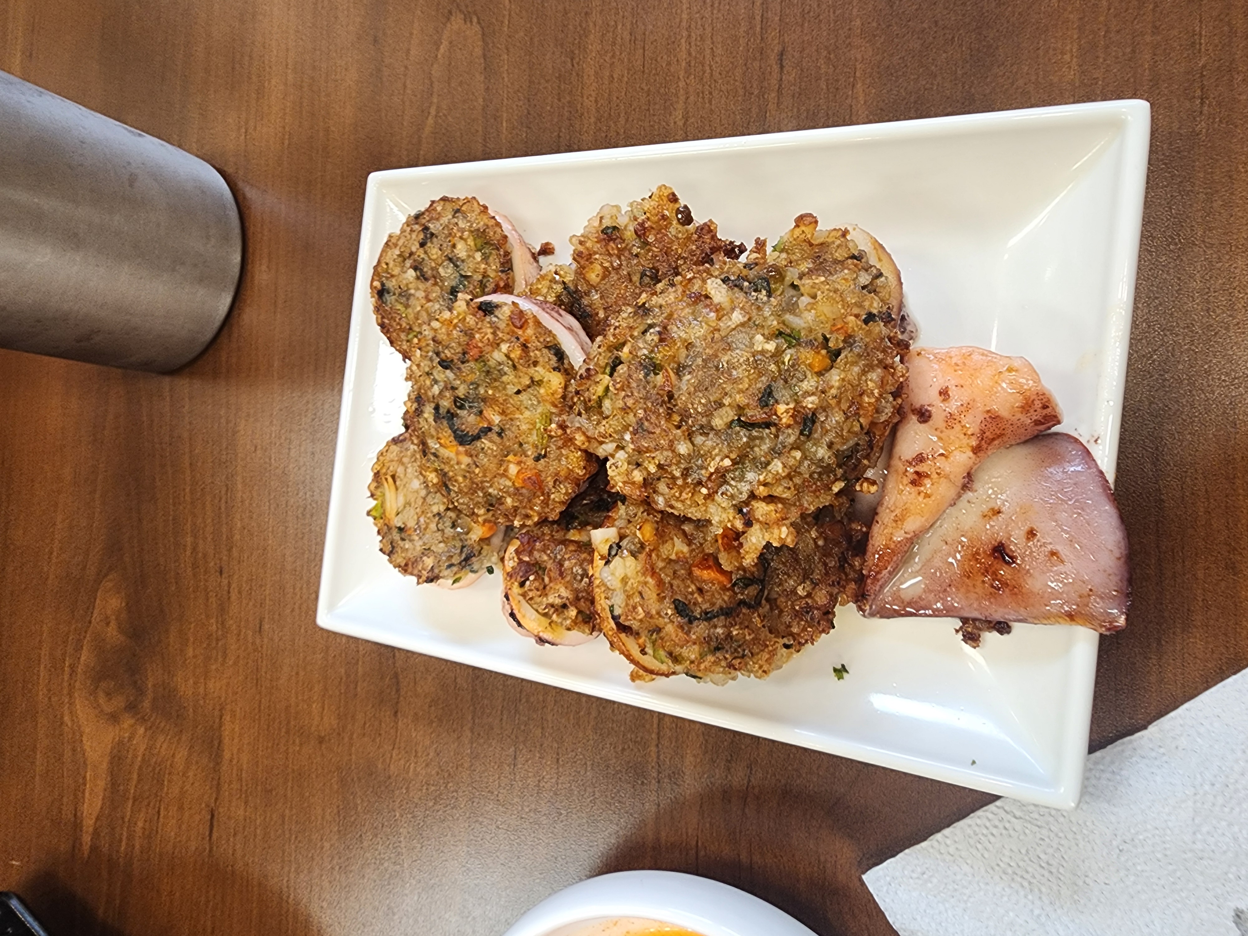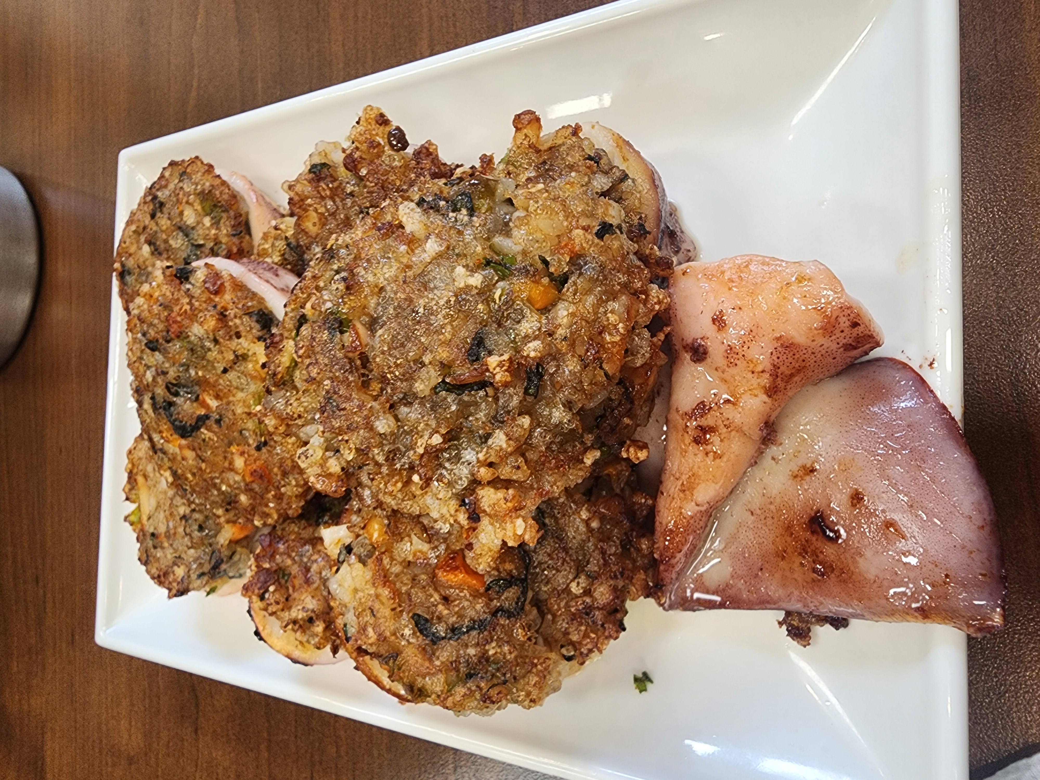 한 입 베어 물면 잘게 썬 채소와 당면이 섞인 속이 촉촉하게 살아 있고, 오징어 특유의 고소한 맛이 은은하게 퍼집니다.